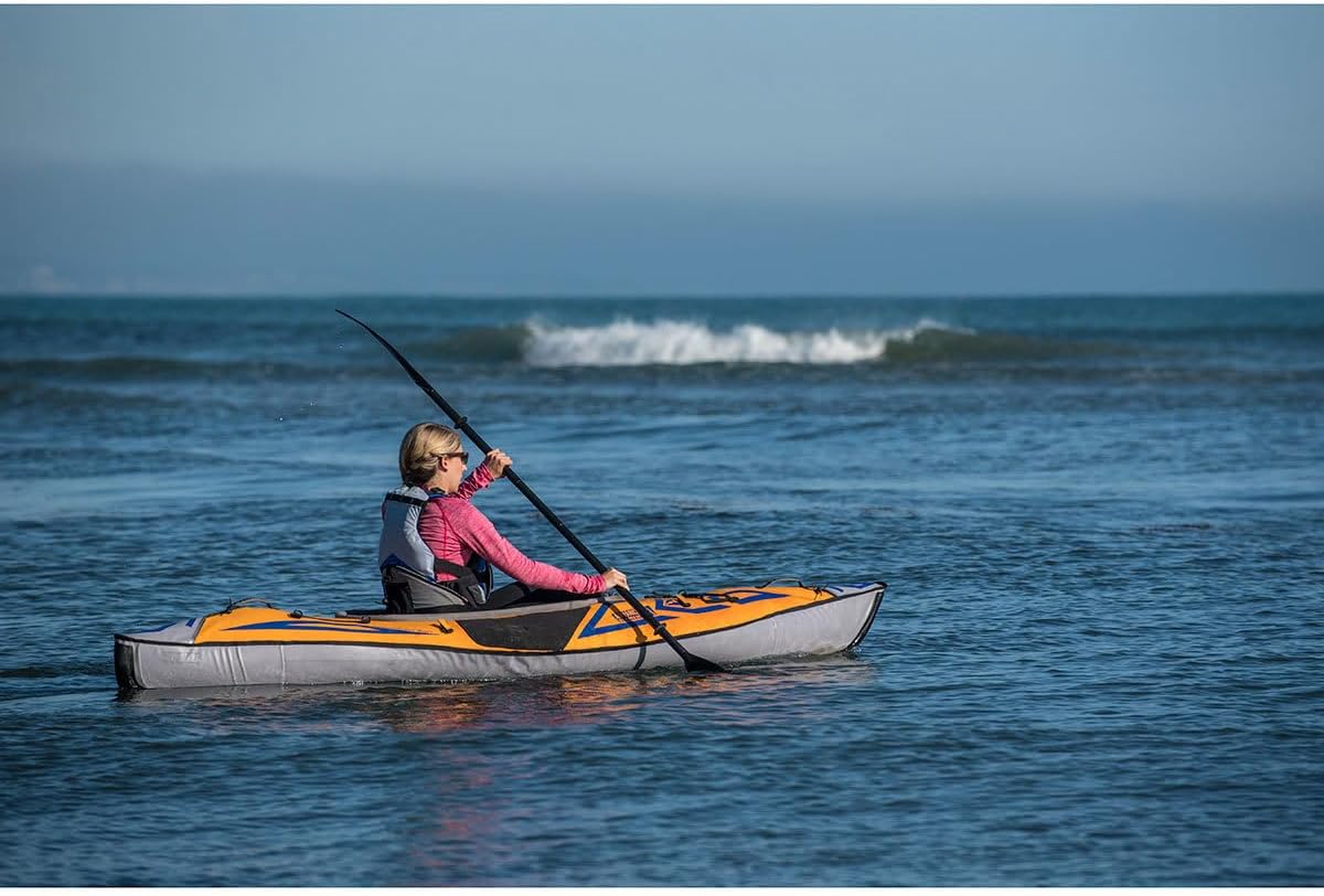 Customers find this kayak excellent for recreational use on lakes, praising its performance and ease of transport. The kayak inflates quickly, is comfortable, and is super easy to set up, with one customer noting it’s ready to paddle in less than 10 minutes. They appreciate its sturdiness, with one mentioning it tracks as well as hard shell kayaks, and another noting it’s not impossible to carry short distances alone.
