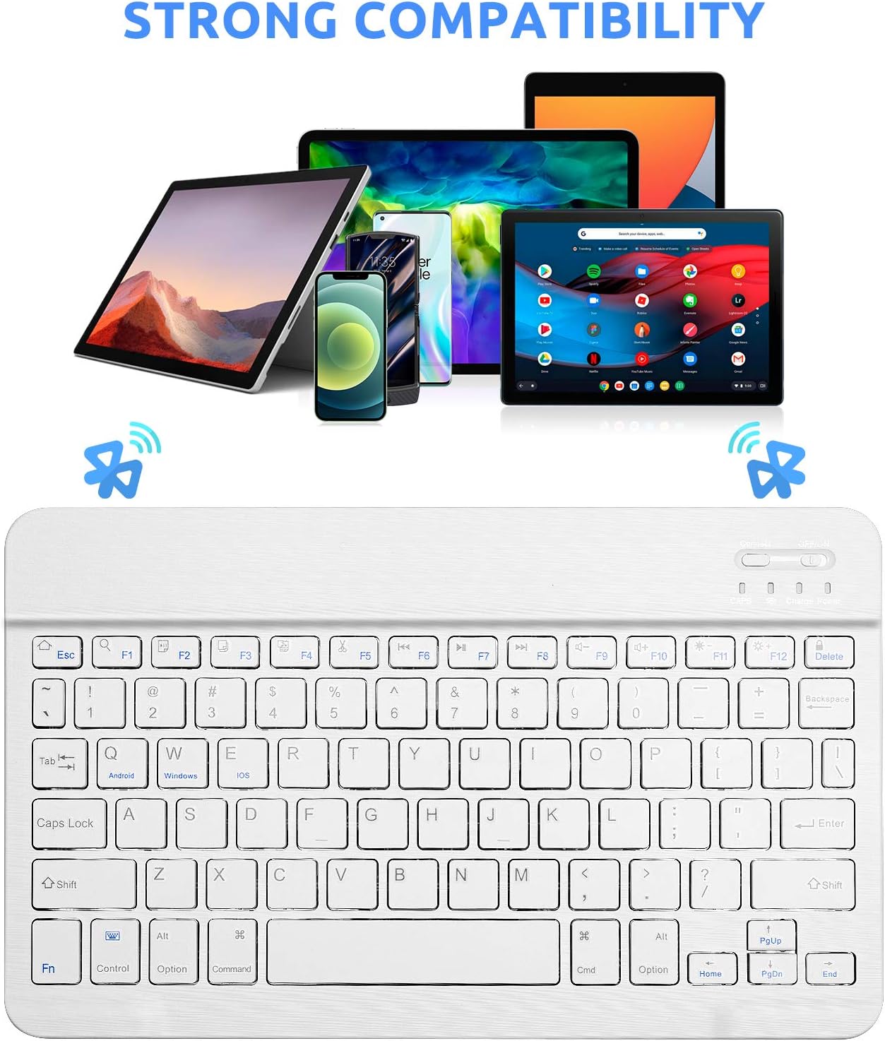 Wireless Keyboard for Amazon Fire HD 8 Tablet,Universal Slim Portable Bluetooth Keyboard Compatible with Amazon Fire Tablet HD 8 Keyboard with Built in Rechargeable Battery,White