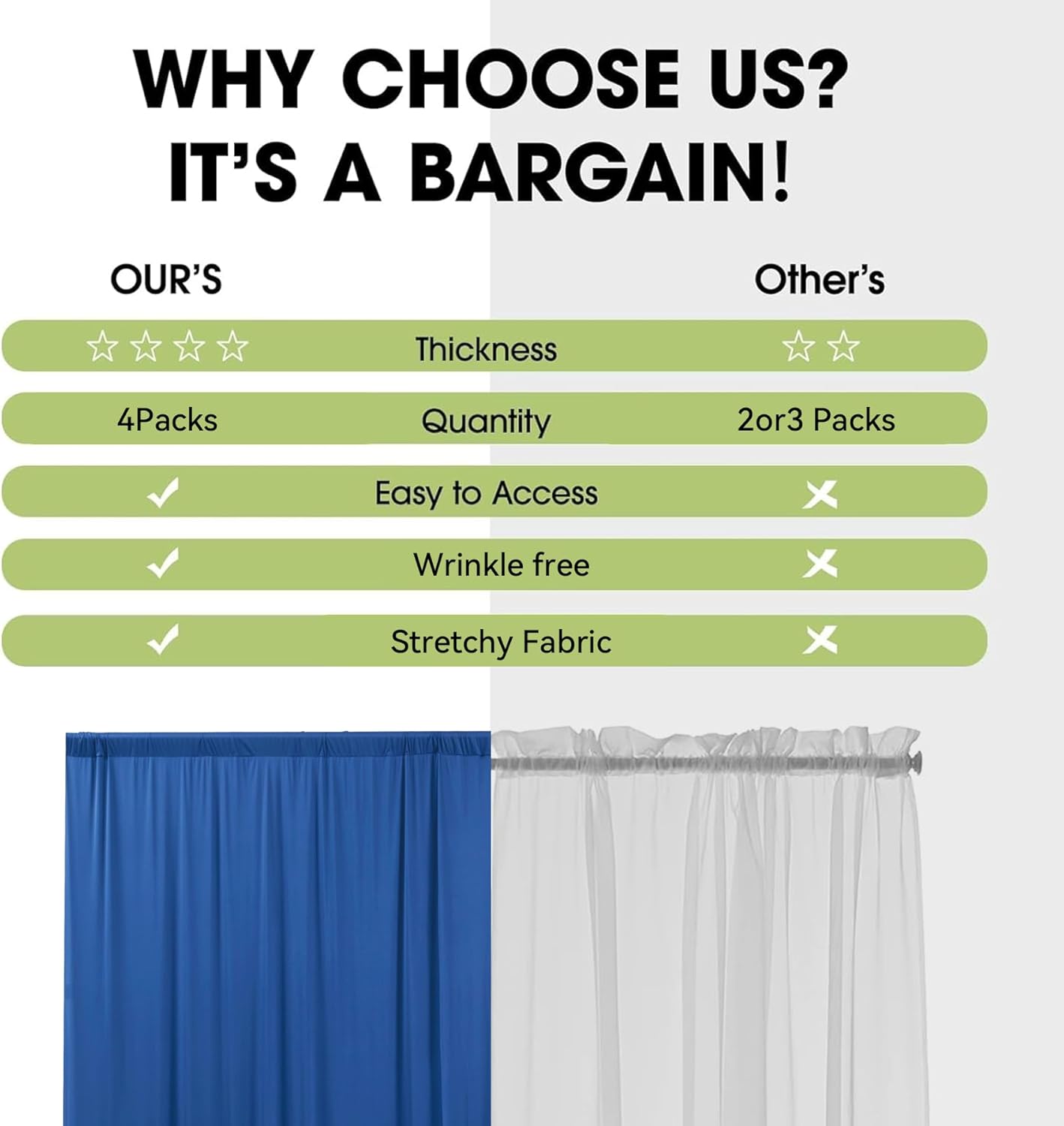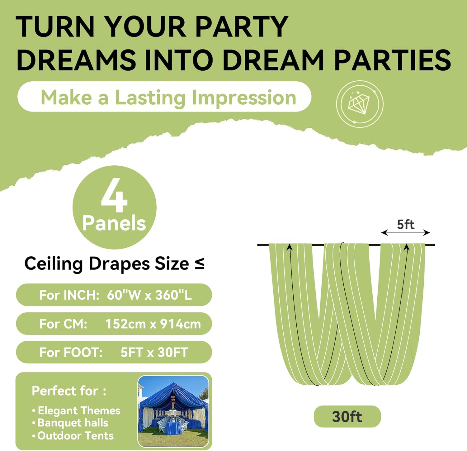 👰【Easy Hanging Draping Fabric】There is a 4 inches pocket for rod or pole entry at the top of each panel creating beautiful draping.Quick installation.Draping fabric are good choice to decorate your party and event.Different hanging methods will bring you various visual effects, and you can DIY them to decorate your party as your inclination.