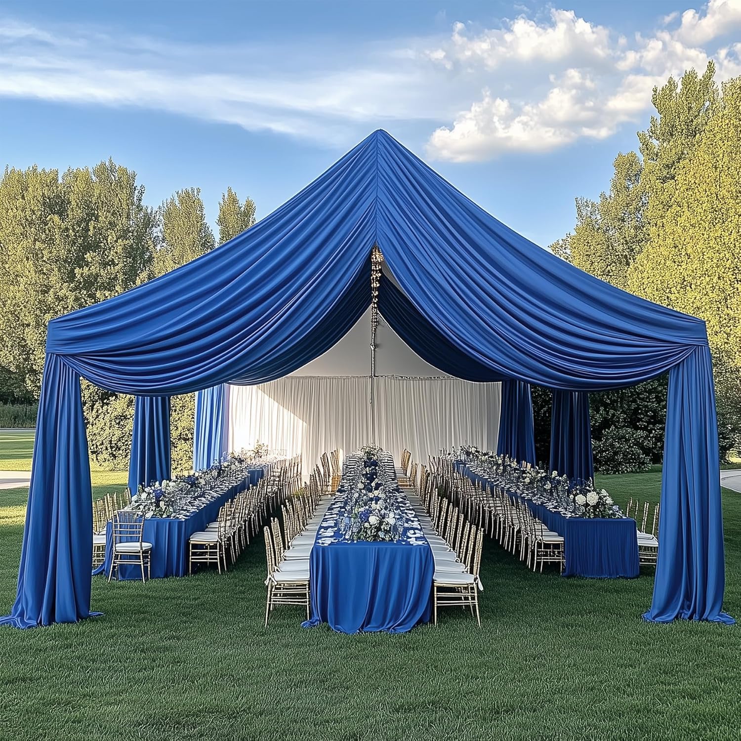 20ftx30ft Royal Blue Ceiling Curtain for Wedding Parties – 4 Panels Wrinkle-Free 30 FT Long Tent Draping Curtains for Wedding, Birthday & Theme Parties, 30ft Height with Rod Pocket