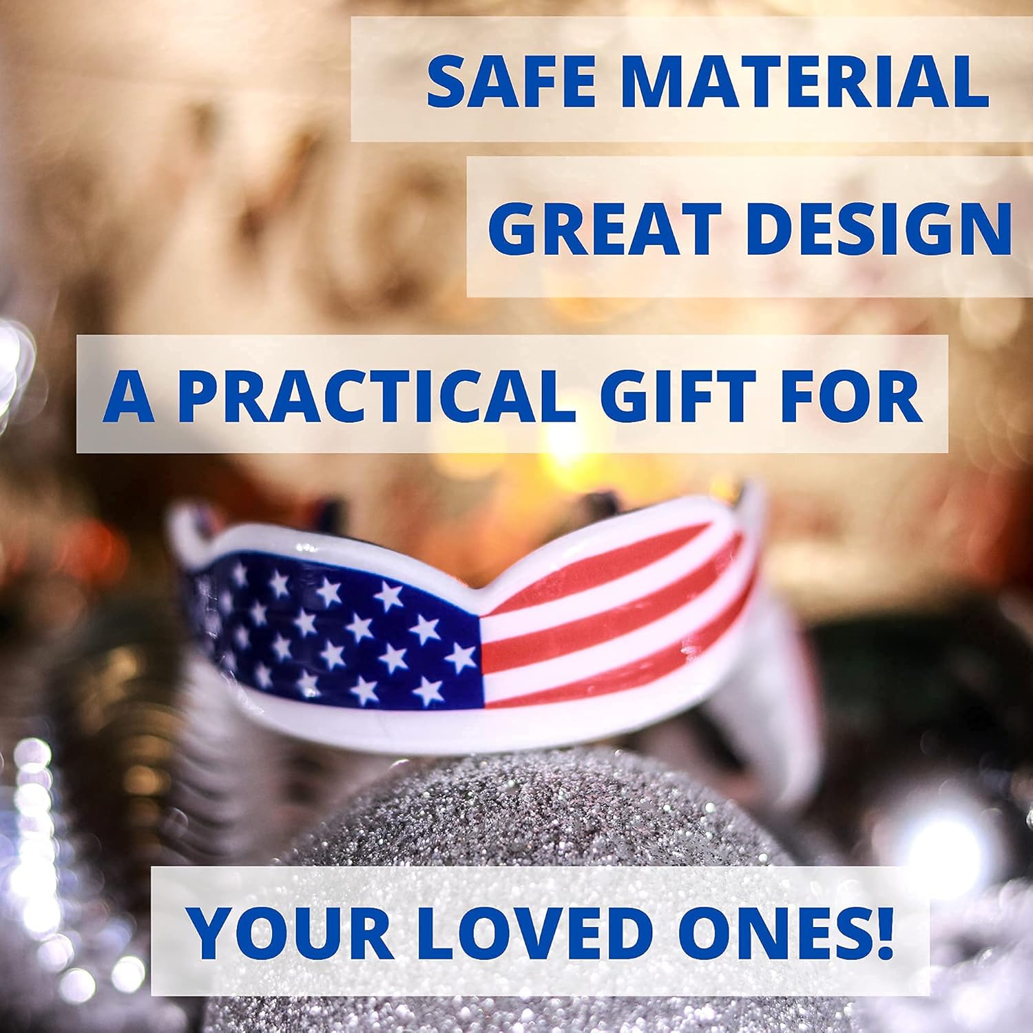 Adult Sports Mouth Guard (USA Flag & Fangs & 15 Best Colors to Choose from) – Mouthguard for Football, Boxing, Karate, Martial Arts, Rugby, MMA, Sparring, Hockey (Adult, Strapless)