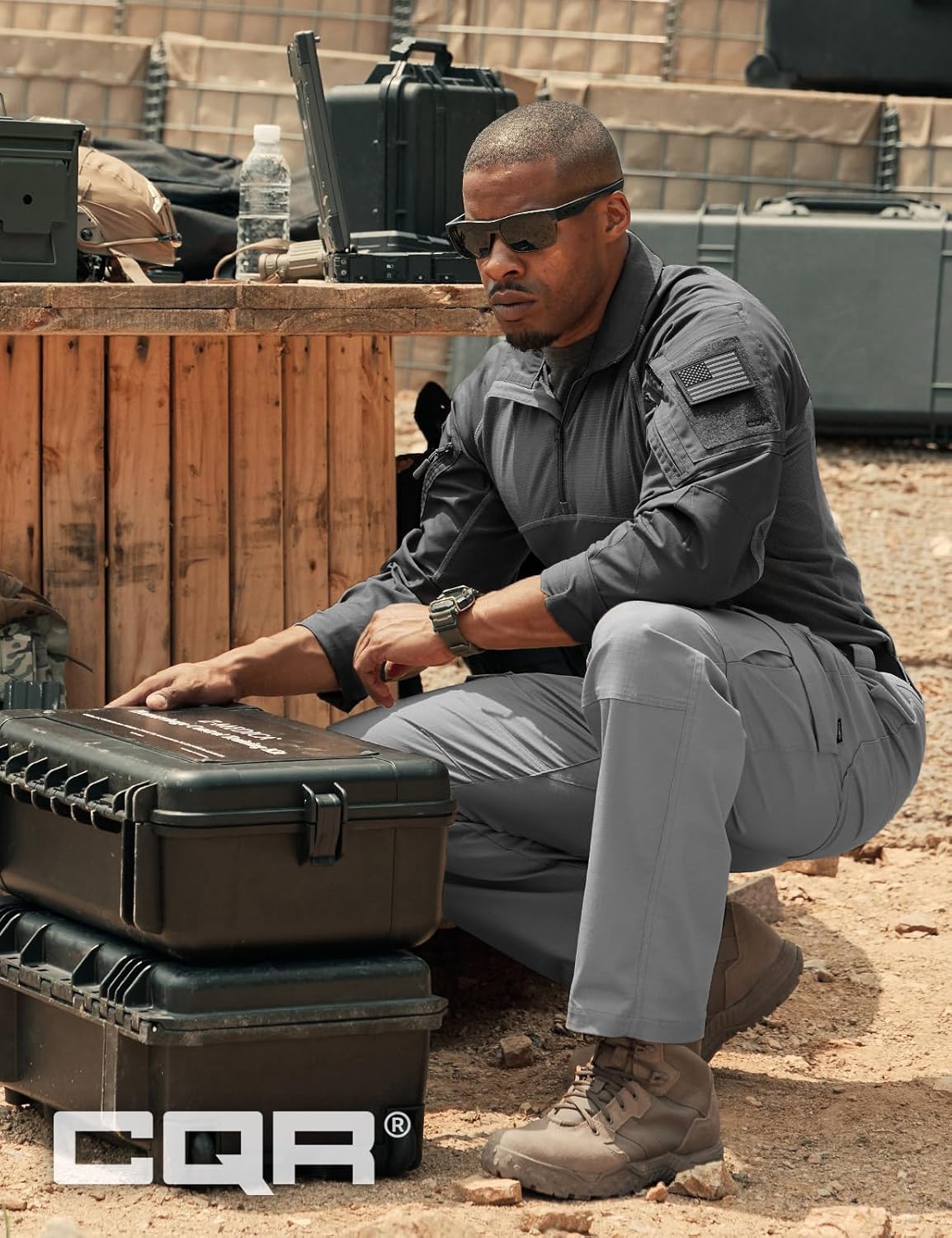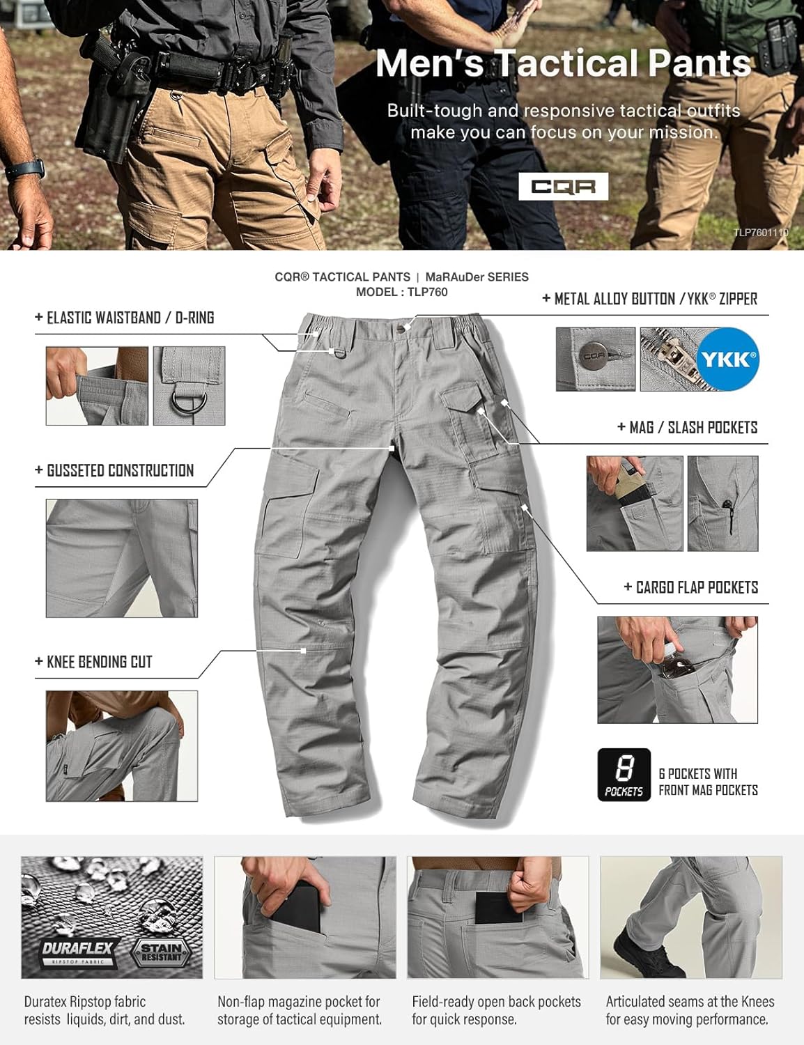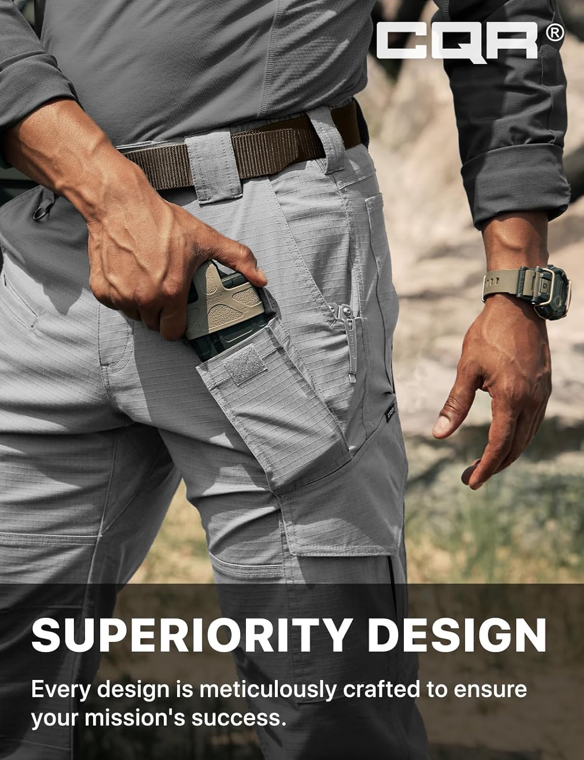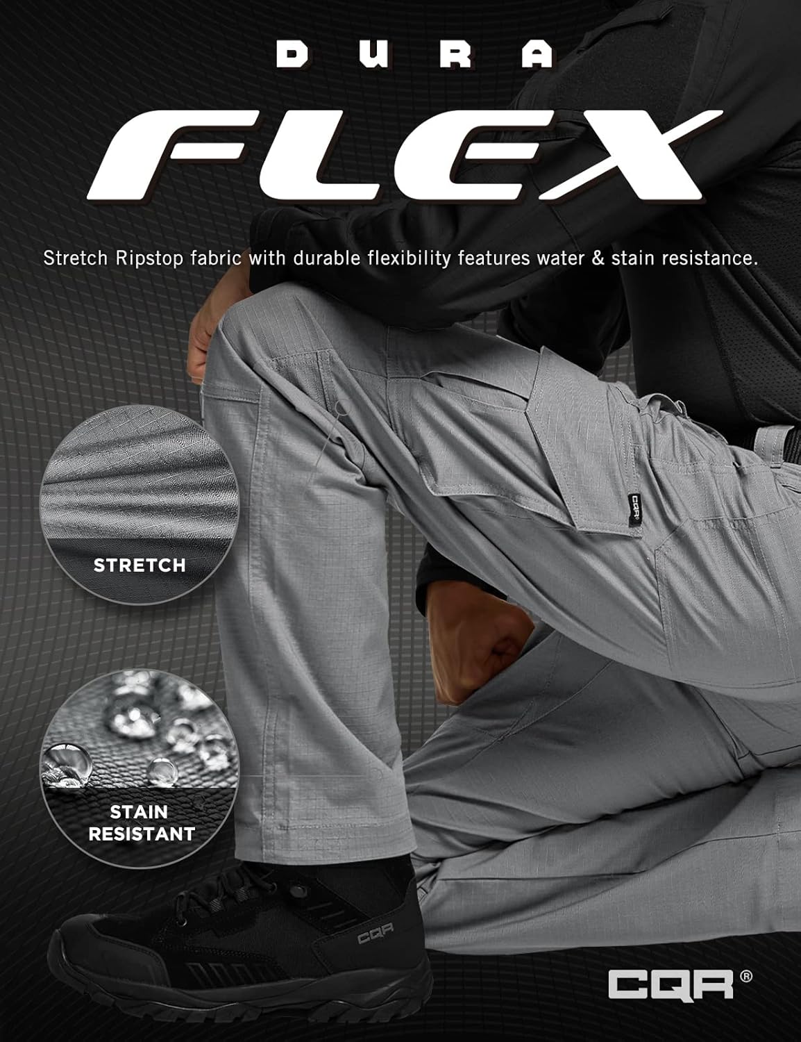CQR Men’s Flex Ripstop Tactical Pants, Water Resistant Stretch Cargo Pants, Lightweight EDC Hiking Work Pants