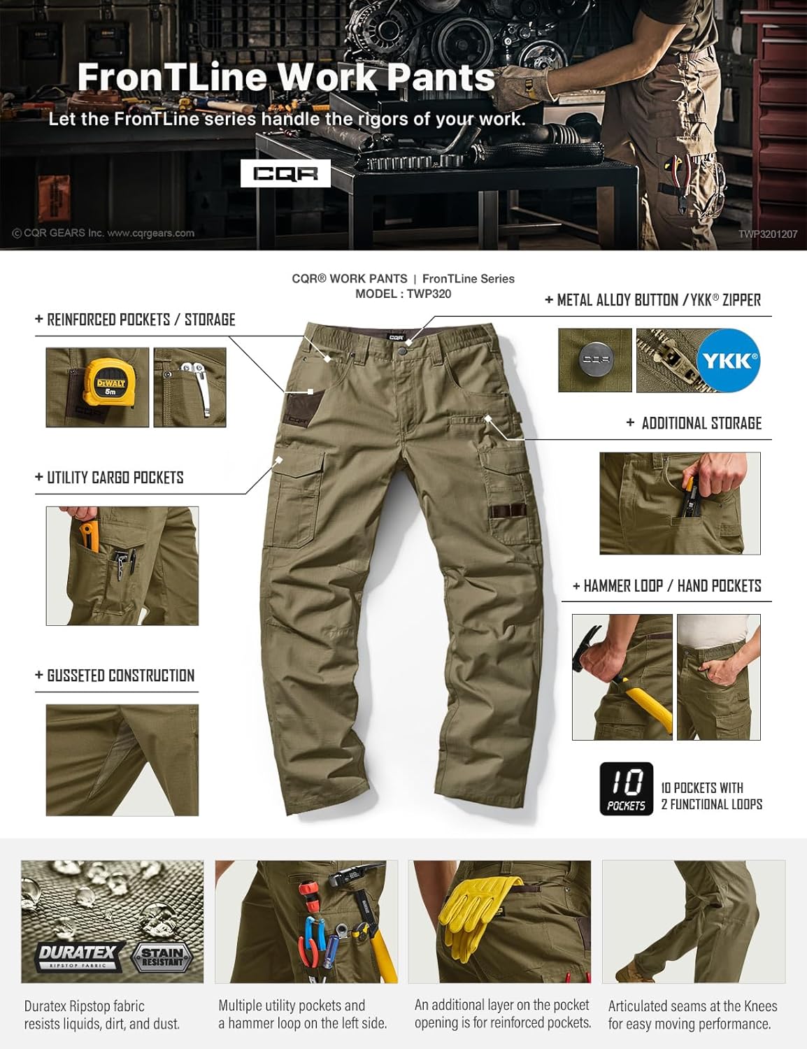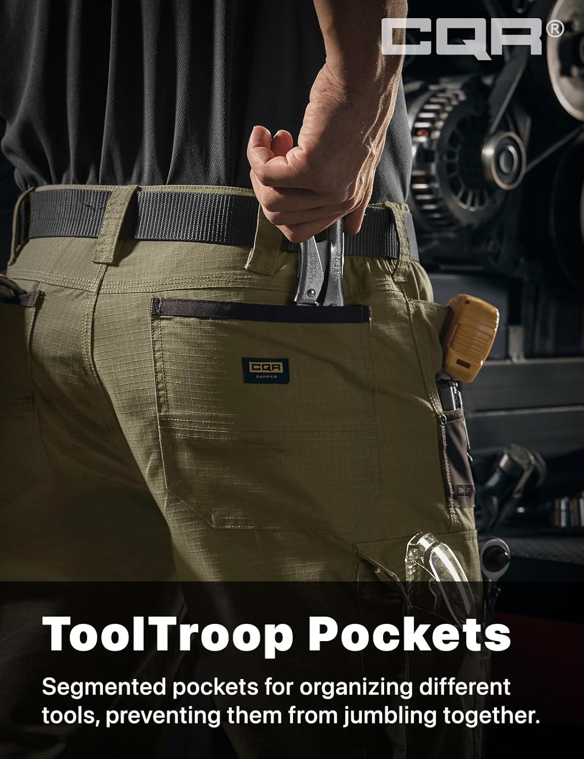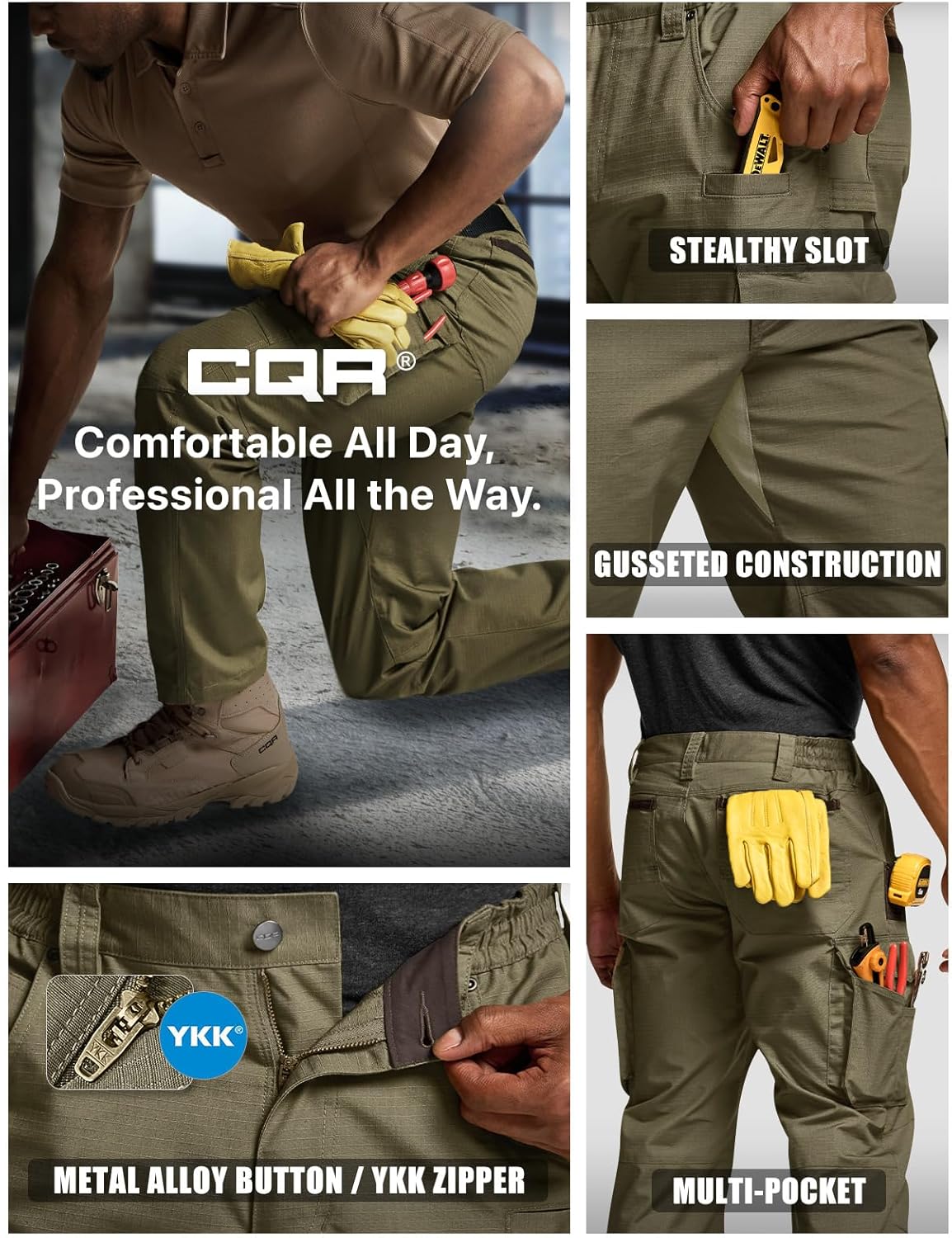 CQR Men’s Quick Dry Work Pants, Water Resistant Outdoor Tactical Pants, Lightweight Stretch Cargo Hiking Pants