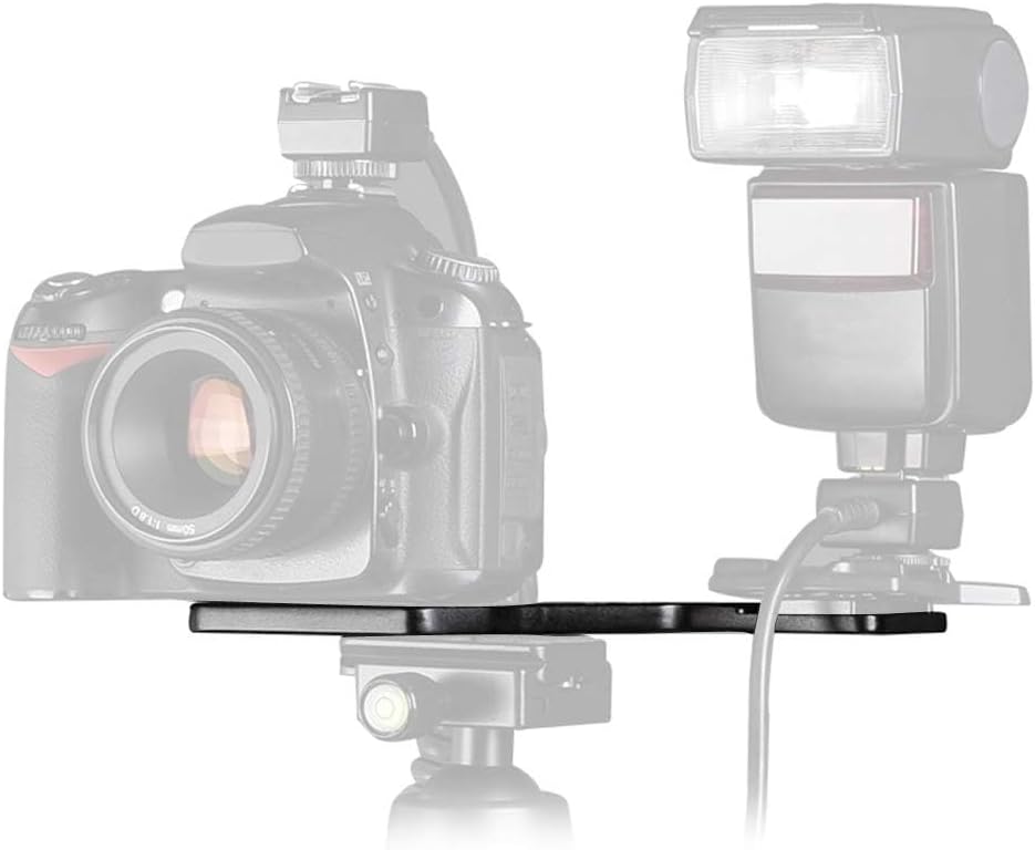 EASY TO CARRY: Compacti size, easy to carry anywhere, dual hot shoe mount can support camera or flash at the same time, suitable for various tripod, DSLR camera, DV camera, monitor, on-camera lights, microphone shock mounts