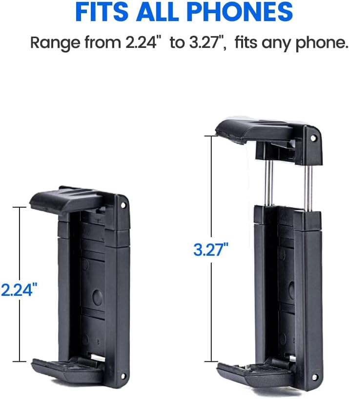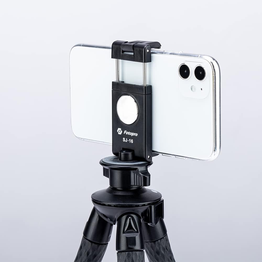 【Universal Phone Holder】Fotopro SJ-16 Cell Phone Tripod Mount fits any cell phone from 2.24 inches to 3.27 inches wide to meet the needs of cell phone photographers and video makers.