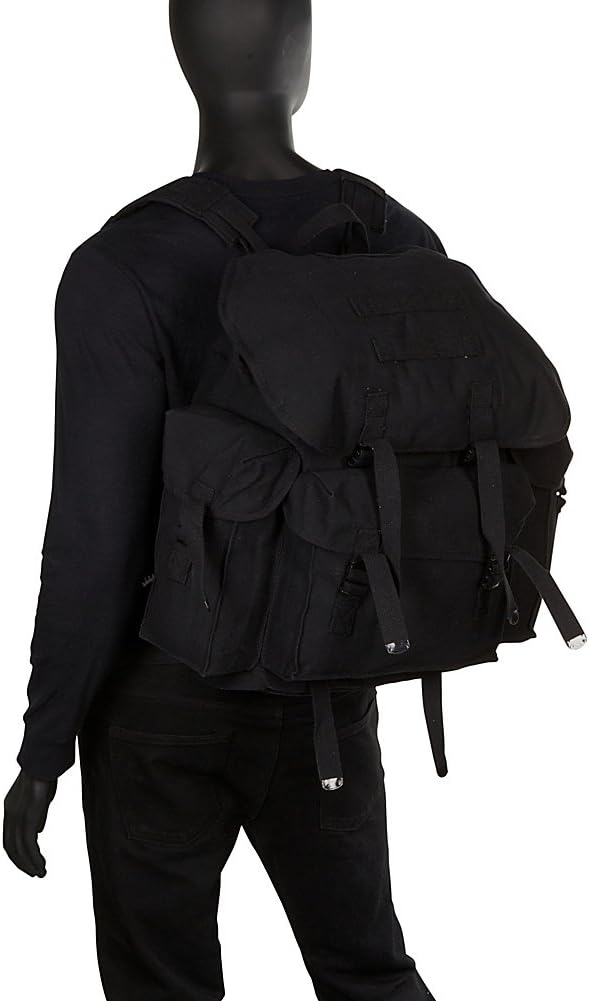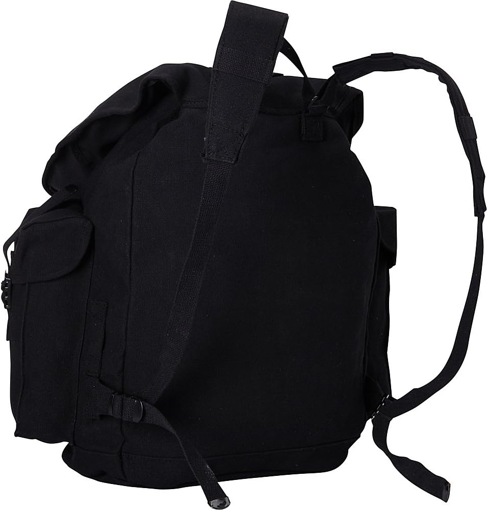 Replica of European NATO Rucksack Large main compartment with drawstring corded closure and storm flap. Inside pocket with Velcro closure. One large exterior pocket, two side pockets. Adjustable padded shoulder straps. Polypro webbing throughout.