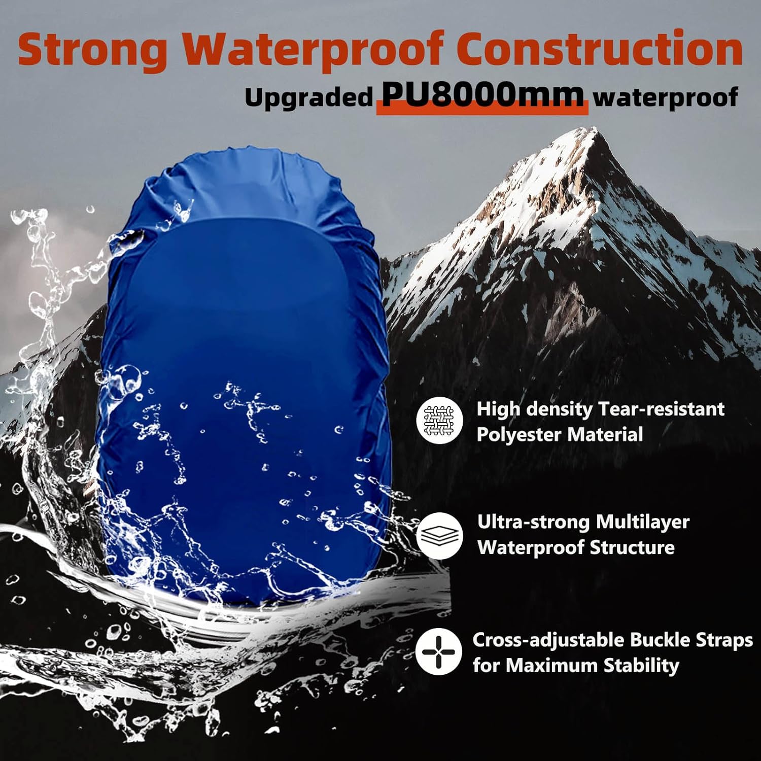 Frelaxy Waterproof Backpack Rain Cover, 8000mm Waterproof Level, Upgraded Ultra-Strong Multilayer Structure, Antislip Cross Buckle Strap, Ultralight Compact Portable, for Hiking, Camping, Traveling
