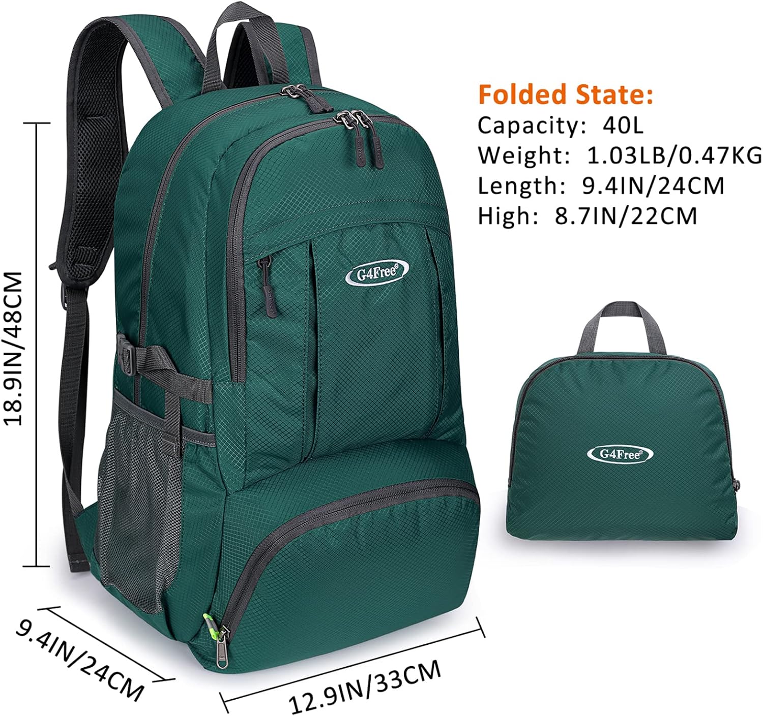 G4Free 40L Lightweight Packable Hiking Backpack, Waterproof Travel Daypack