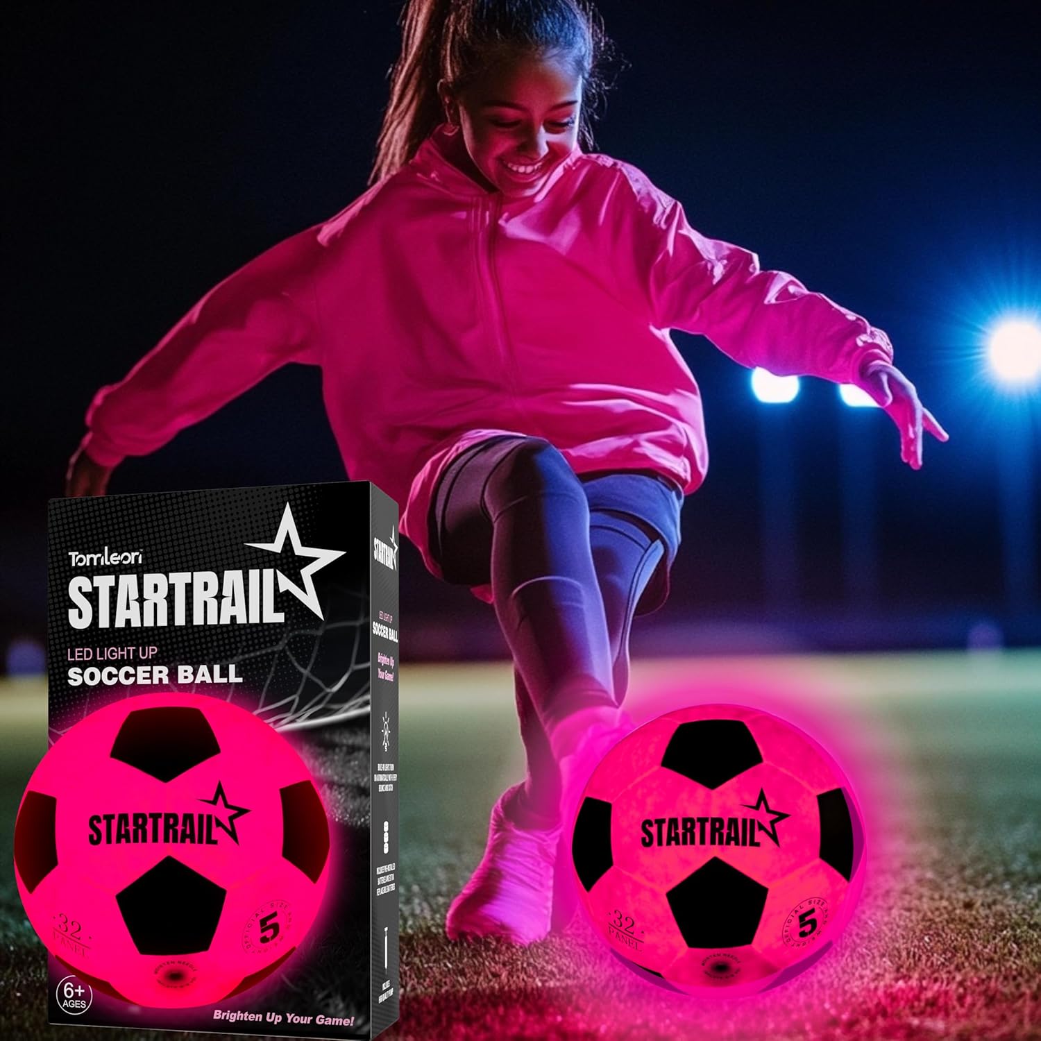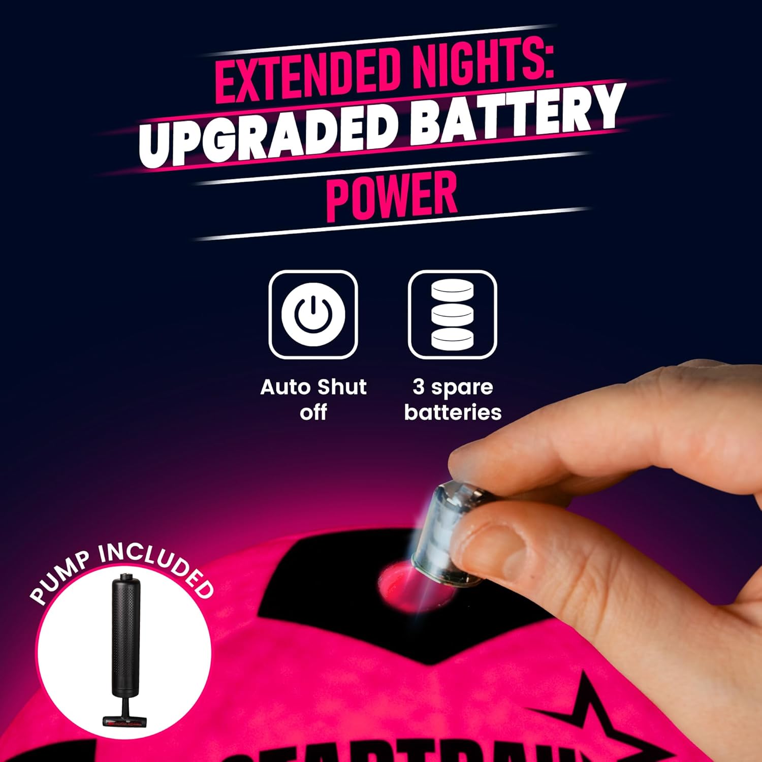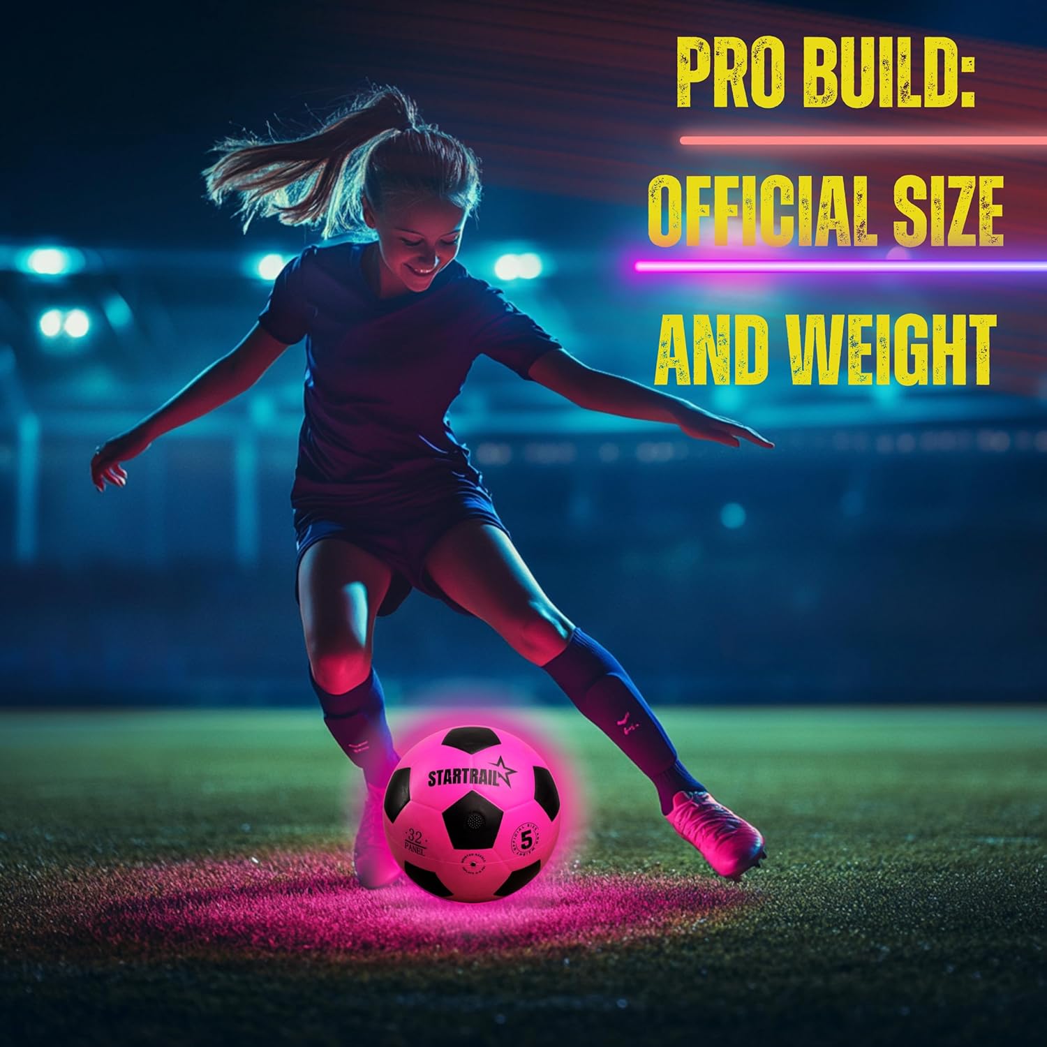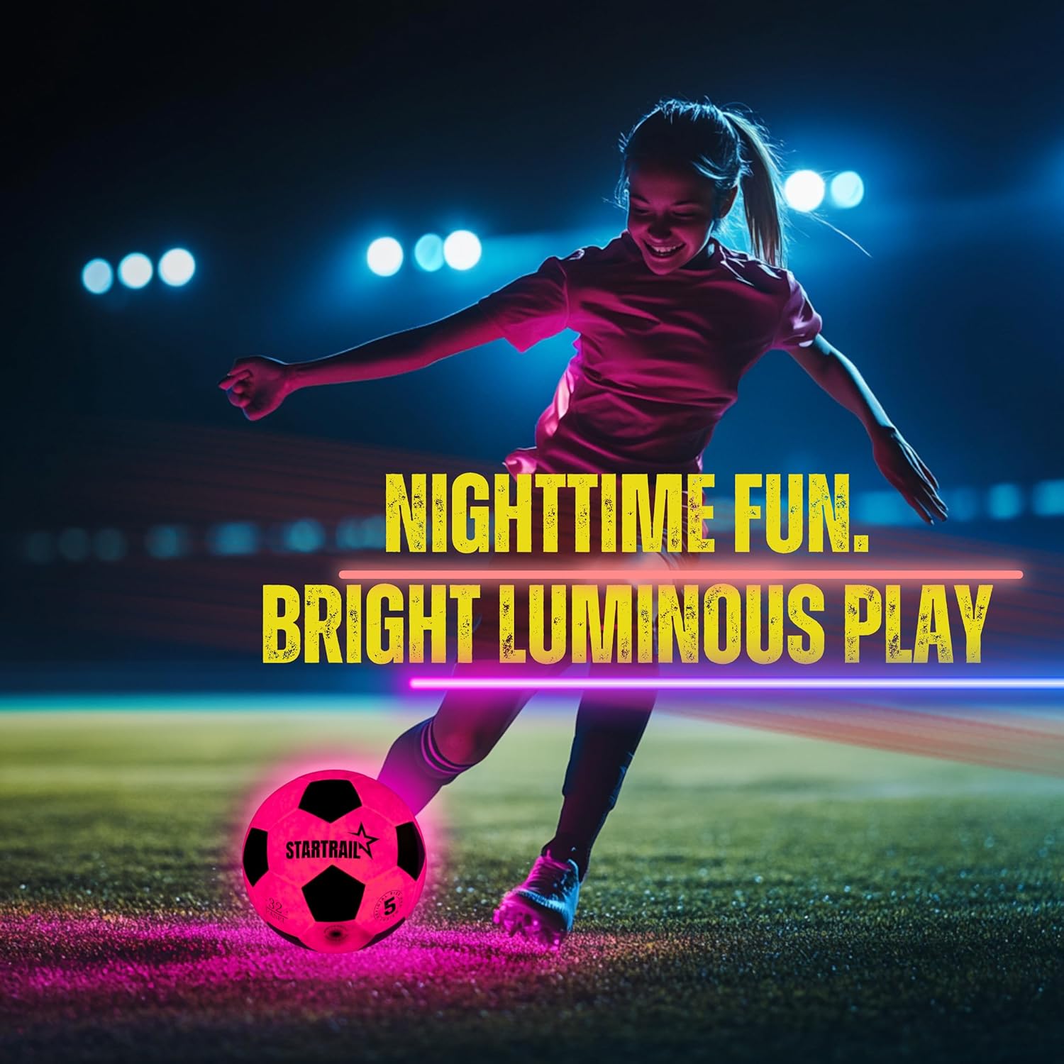 Glow in the Dark Soccer Ball | Sports Gift for Girls Ages 6-15 | LED Light-Up Ball with 3 Extra Batteries and Pump | Pre-Installed Batteries | Size 5 | Indoor & Outdoor Fun Gift for Kids & Teens 8-15