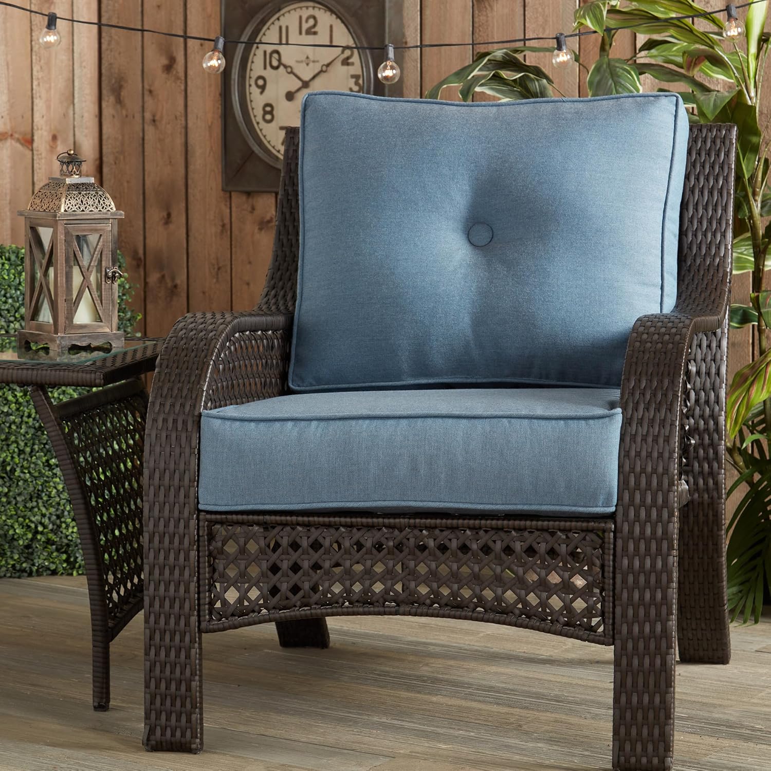 2-PIECE SET: This premium deep seat cushion set comes with one 24″ W x 24″ D reversible seat cushion, and one 24″ W x 20″ H reversible back cushion (Furniture pictured is not included)
