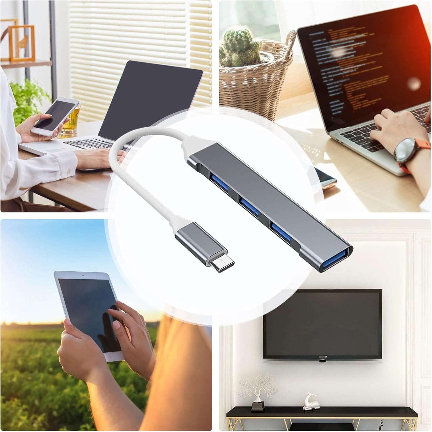 Laptop USB Hub – 4-Port USB Data Expander, Fast Charging Multiport Adapter | Lightweight Plug-and-Play Splitter for PC, Notebook, Printer, Cooling Fan, LED Lamp, Console, Office Accessories