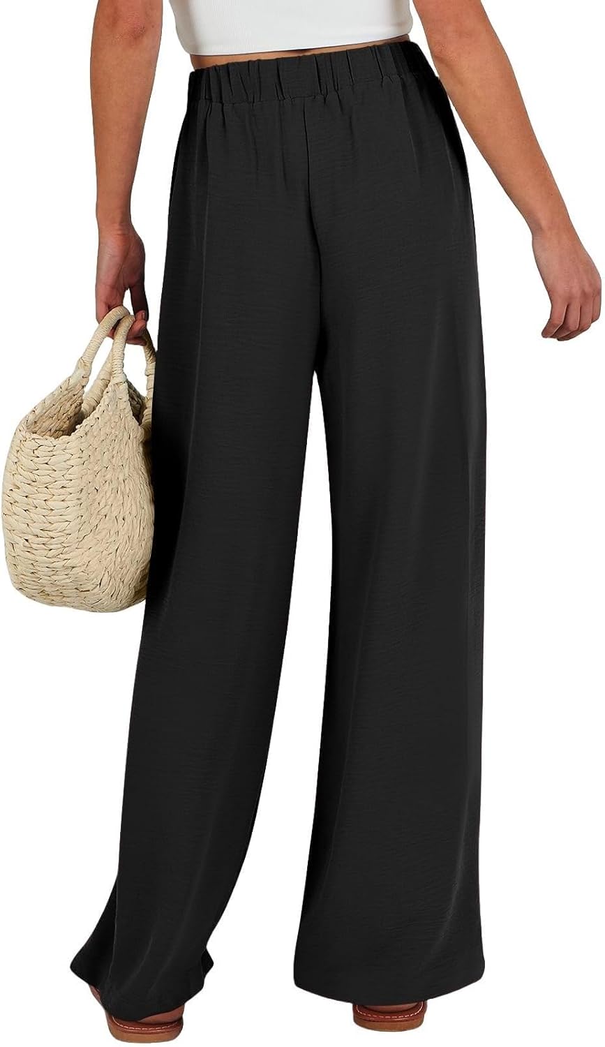 Linen Pants for Women 2025 Summer High Waisted Wide Leg Palazzo Pants Casual Loose Flowy Beach Trousers with Pockets