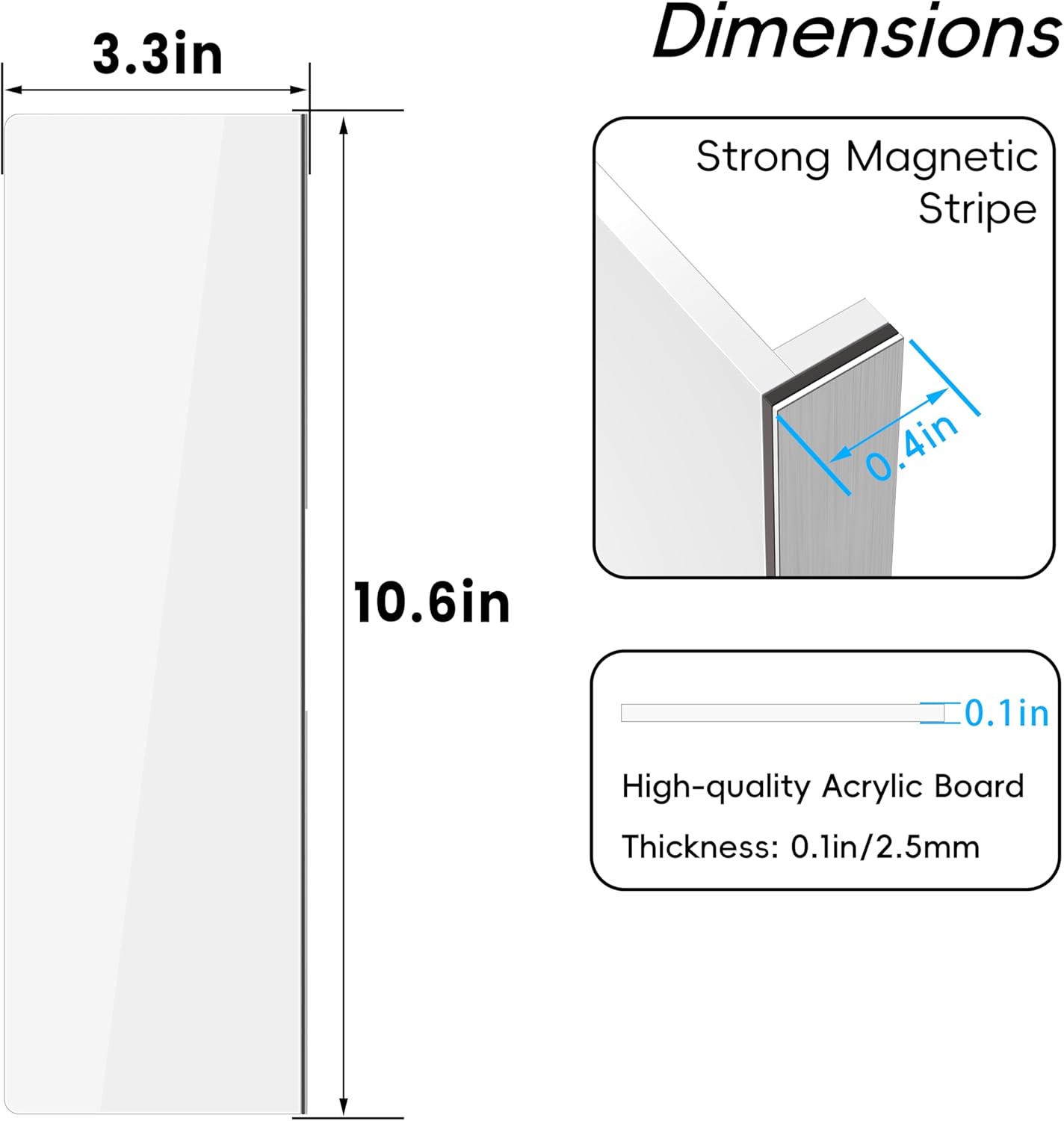 High-quality Material: Crafted from durable acrylic, this acrylic desk organizer is both stylish and lightweight. It features adhesive metal stripe that attach to the side of your monitor, allowing the magnetic board to be easily taken down and used whenever needed. The sleek design adds a modern touch to your workspace while remaining practical and easy to use.