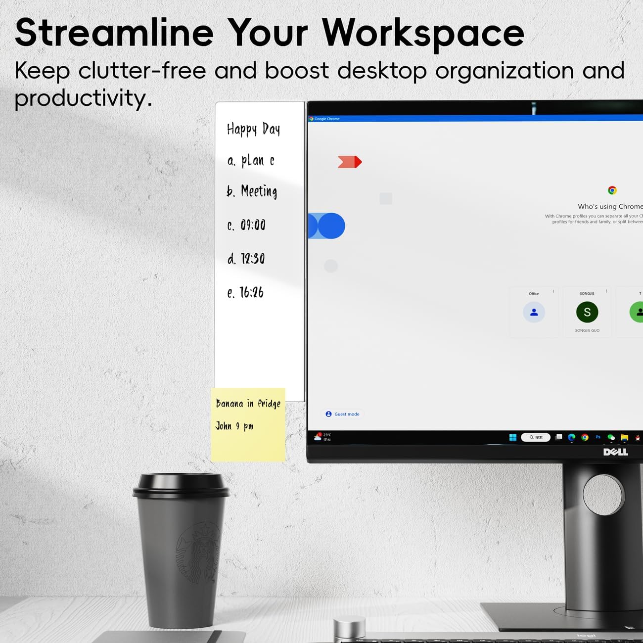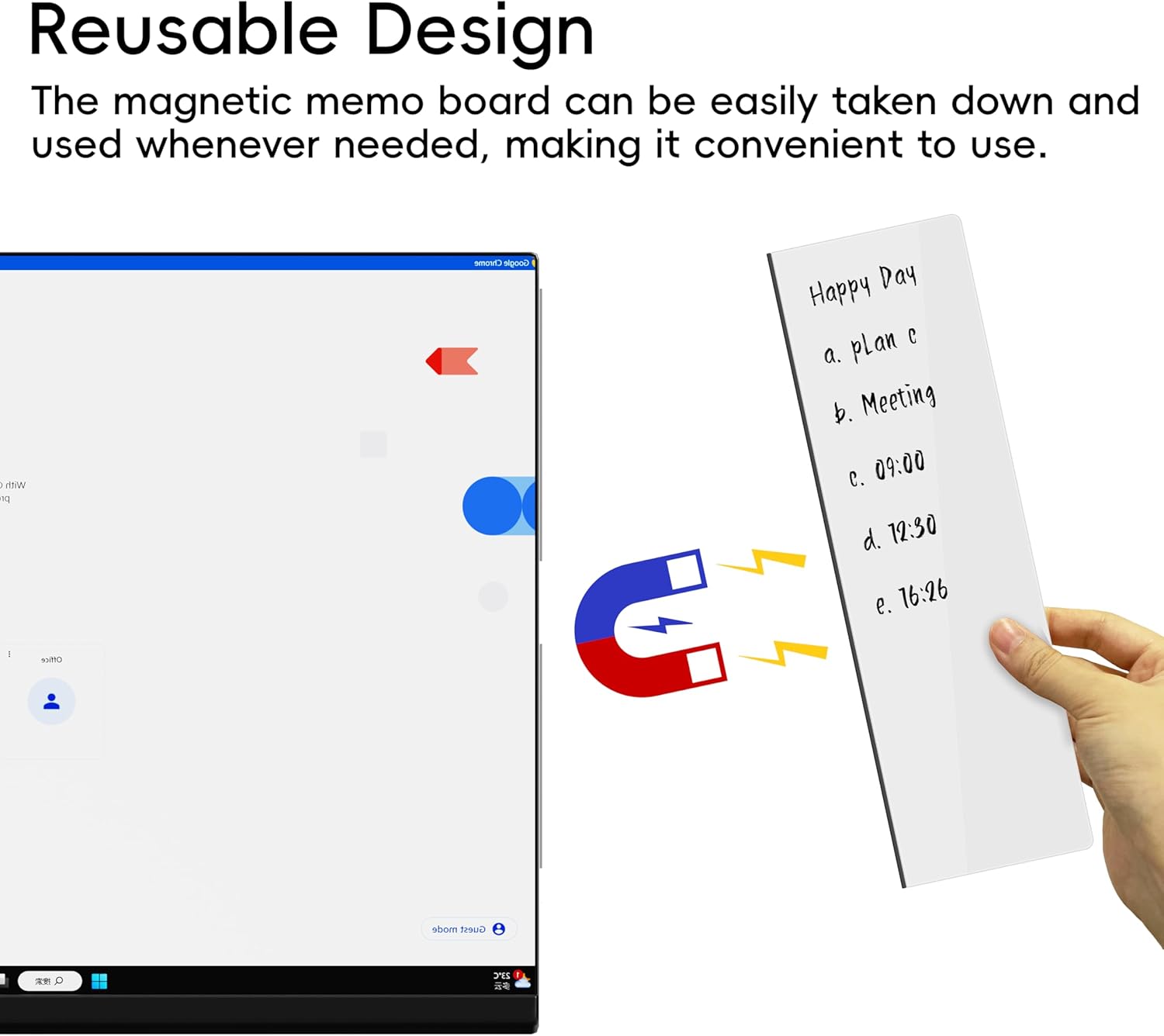 Versatile Memo Board: Enhance your workspace with this magnetic acrylic memo board designed for computer monitors. It serves as a versatile office accessory, perfect for organizing memos, notes, business cards, and more. Ideal for home or office use, it brings convenience and efficiency to your daily tasks.
