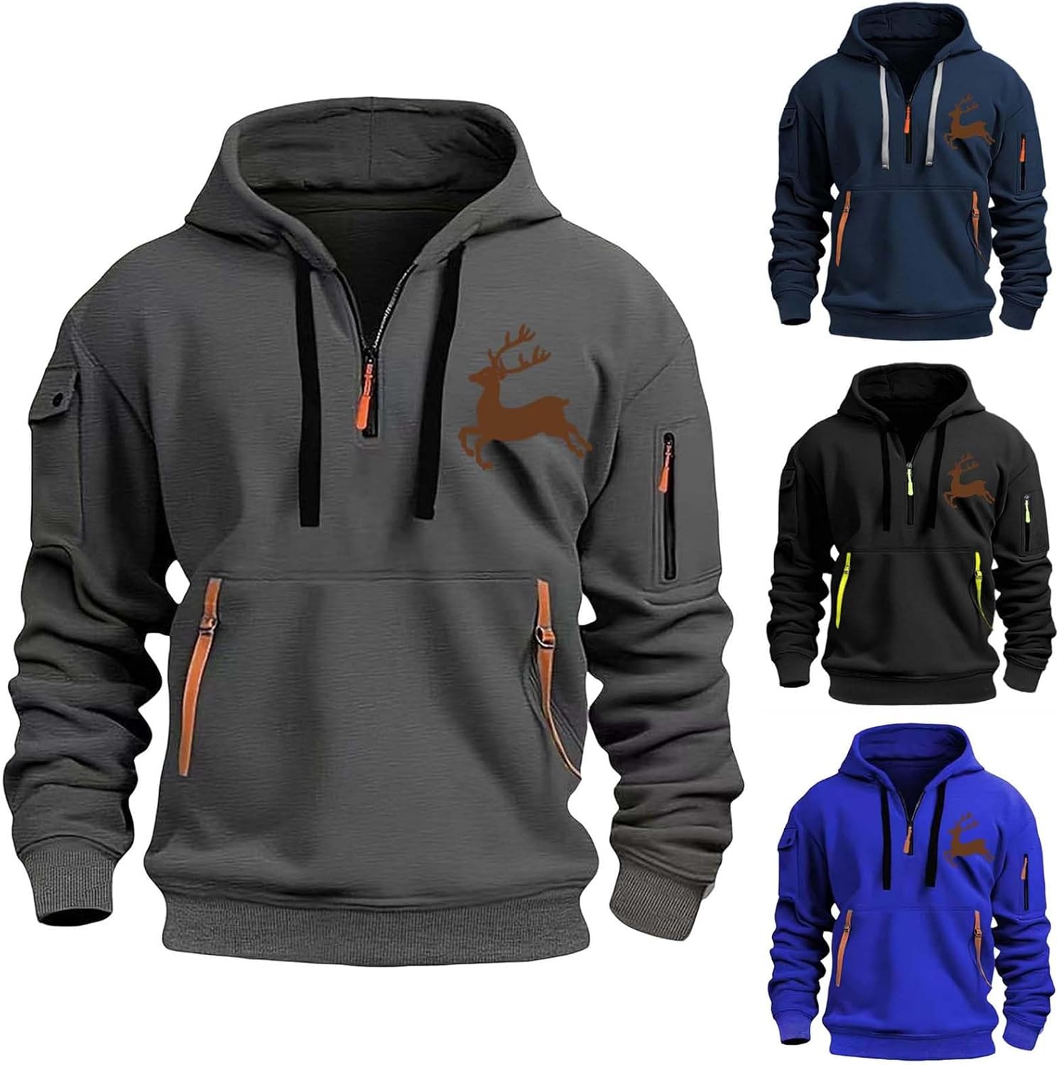 Mens Sweatshirts,Half Zip Hoodie Men Pullover Tactical Sweatshirt Vintage Long Sleeve Casual Hoodie with Pockets