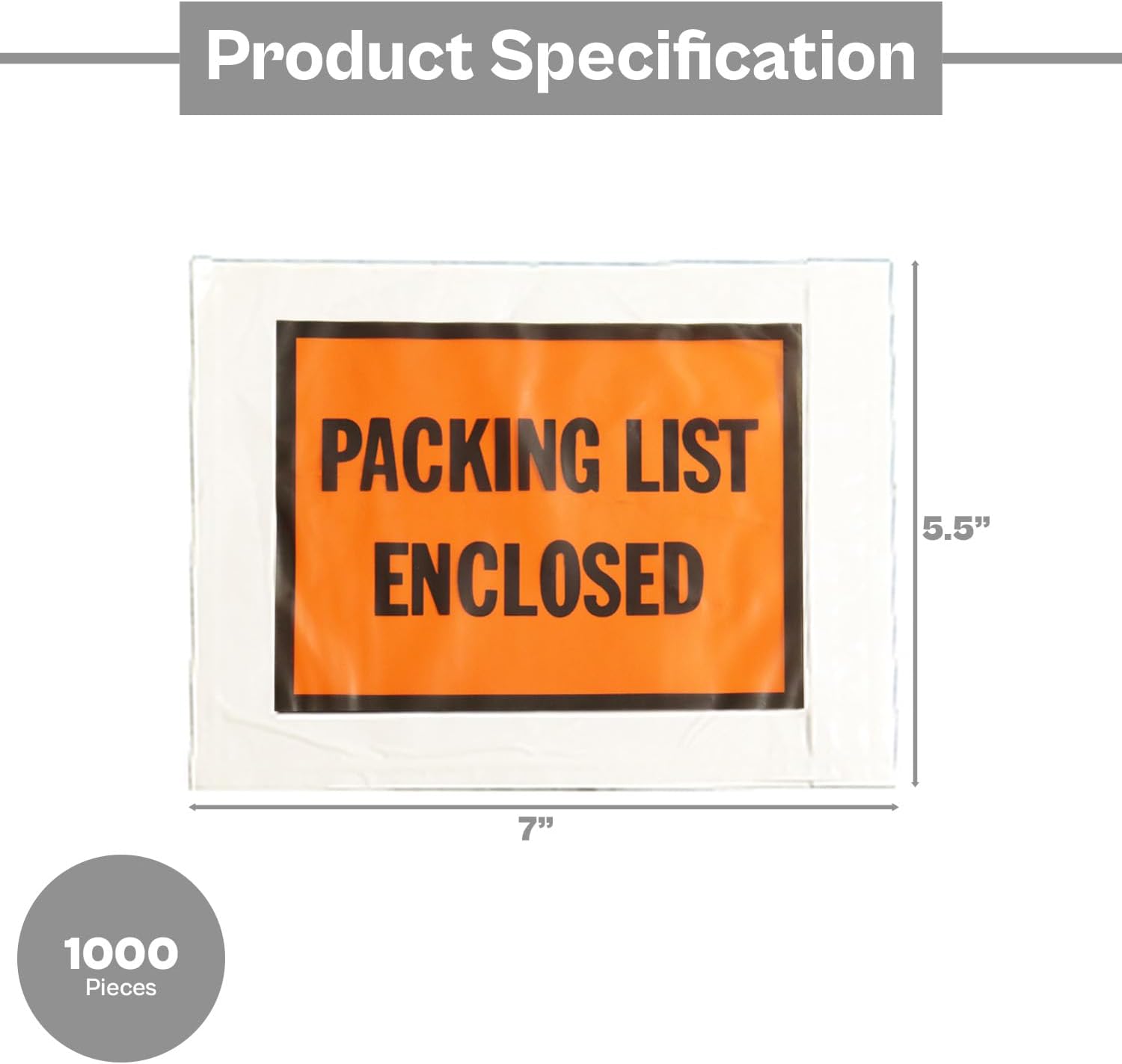 MMBM Packing List Enclosed Envelopes, 5.5×7 Inch, 1000 Pack, Top Loading Adhesive Document Holder, Orange & Black Full Face