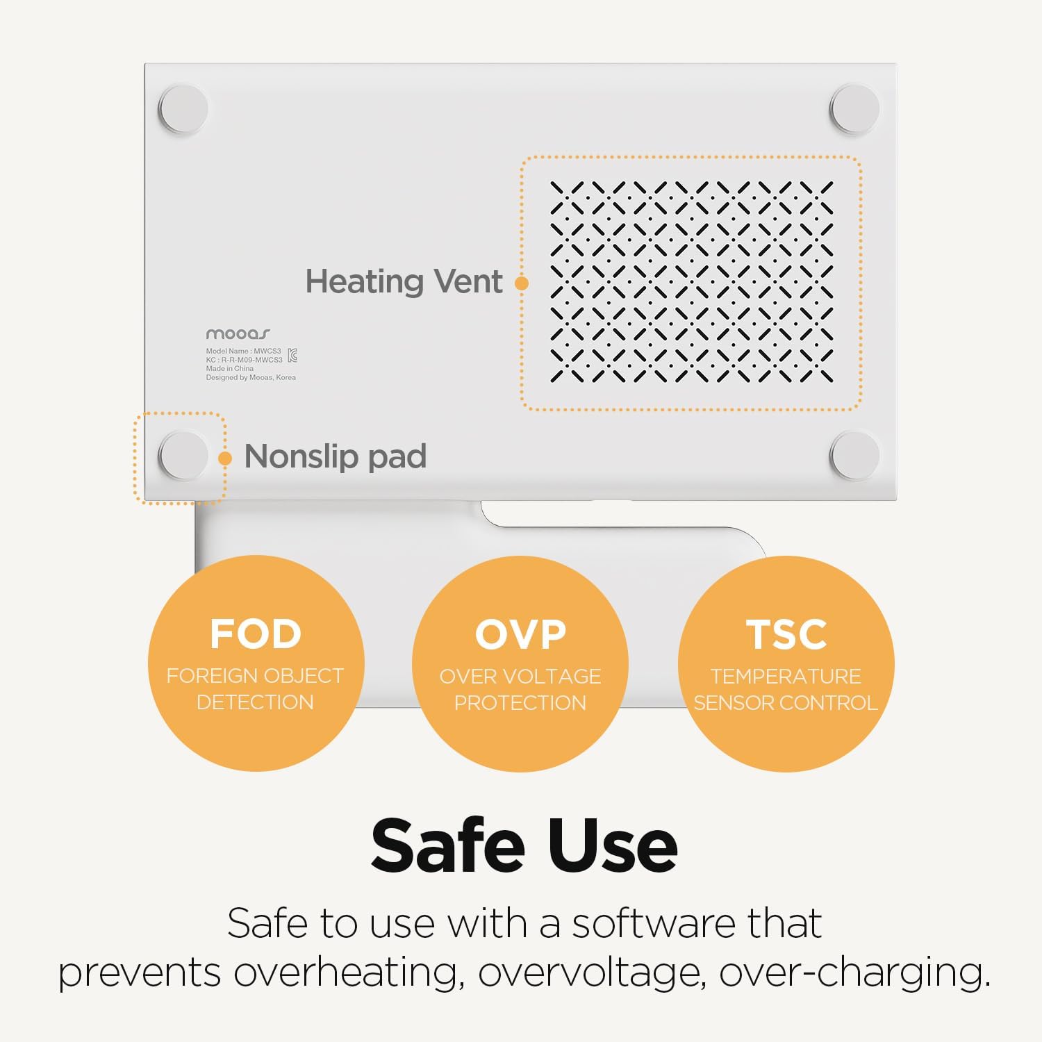 Safe to use: A foreign object detection, overvoltage protection and built-in temperature sensor control prevents overheating. The heat is also released through the hole on the bottom for safety.