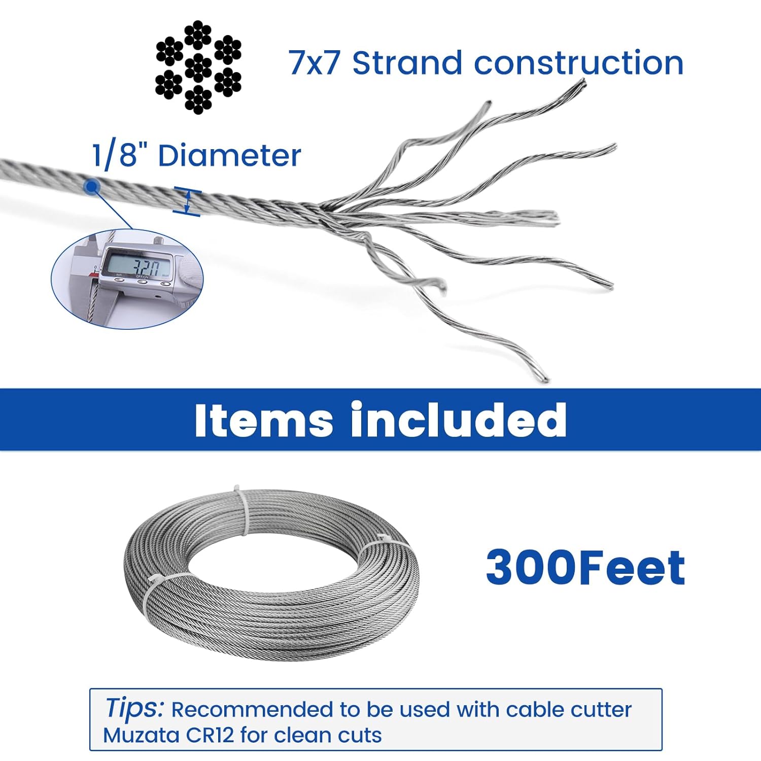 High Quality and Durability: The wire rope is made of quality stainless steel with great strength, durability and rust resistance. Ideal for indoor and outdoor except for coastal applications. Tips: to avoid the hassle of returns due to over-buying or under-buying, please estimate the total length of your project in advance and add 10% to the total estimated length as contingency. Package includes: 300 ft 1/8″ stainless steel wire rope
