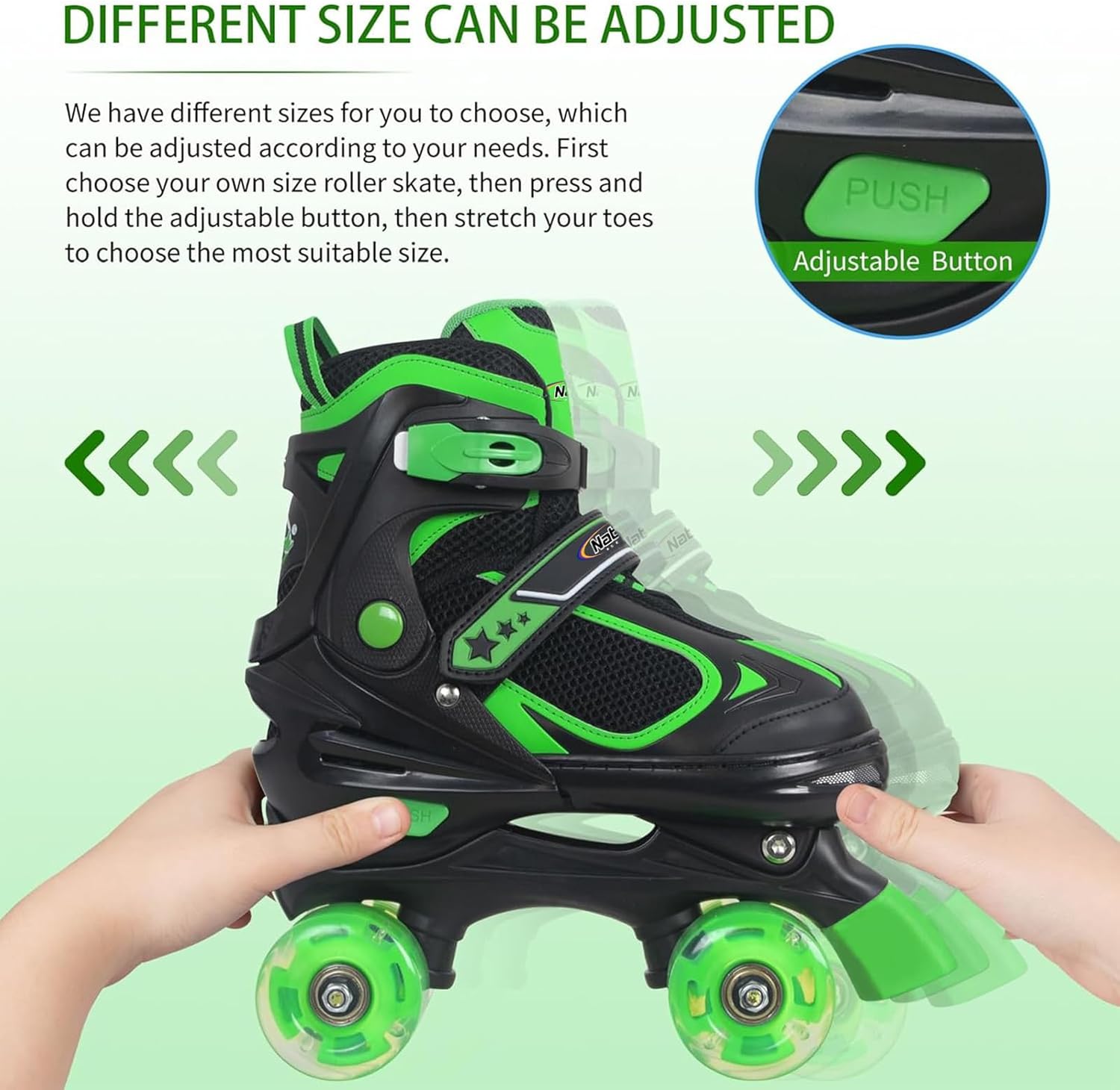 Nattork Kids Roller Skates for Boys Girls Kids, 4 Sizes Adjustable Quad Skates with All Light up Wheels – Birthday Gift for Indoor Outdoor Sports