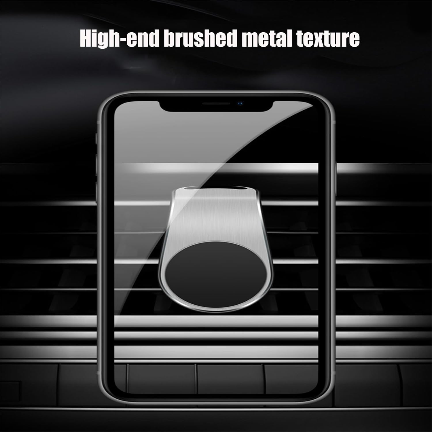 This car magnetic mobile phone holder is made of metal with a delicate brushed surface, giving it a refined silver appearance and a full texture