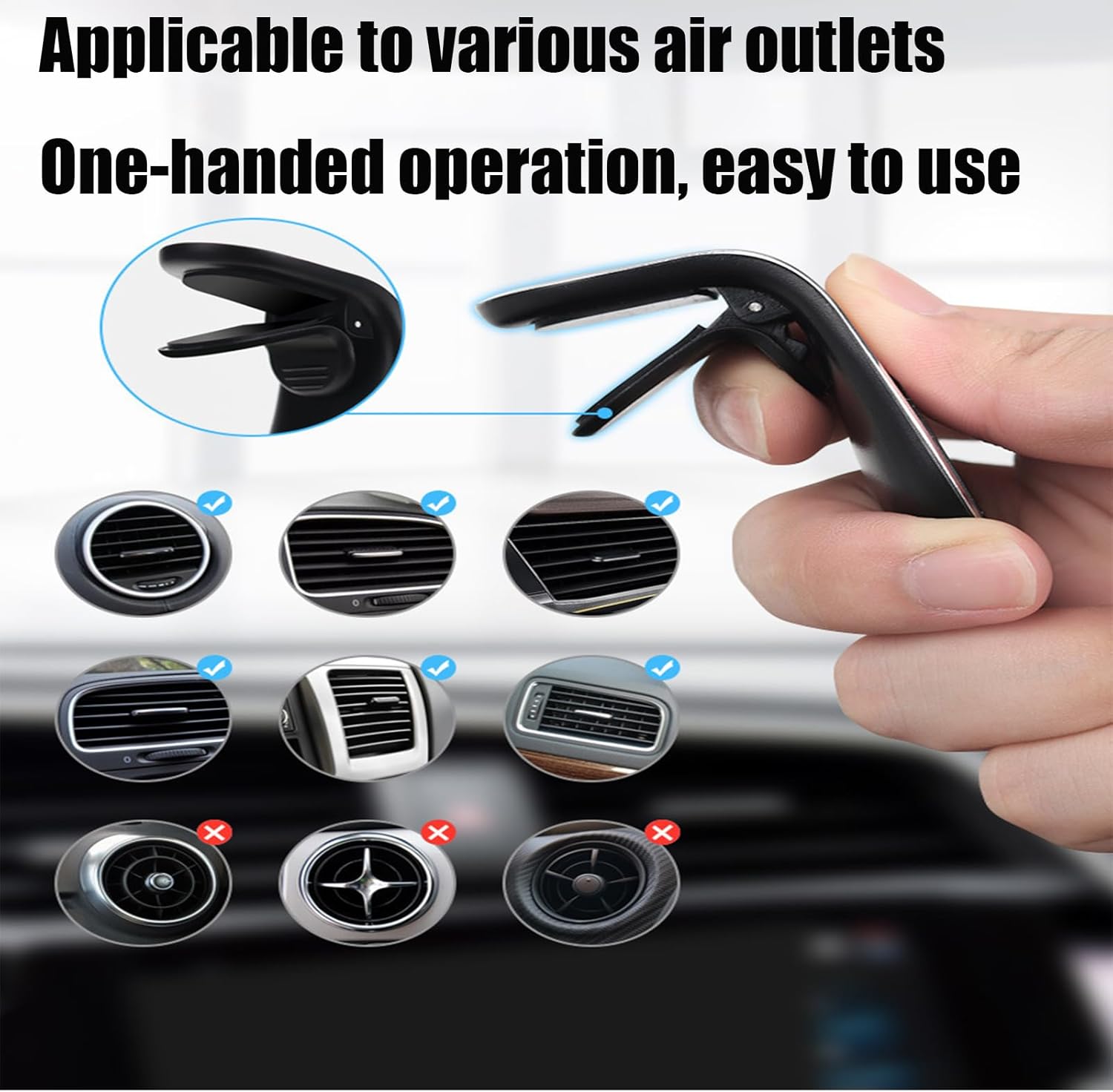 Convenient air outlet installation: Designed for car air outlets, it is easy to install. Just clip the bracket’s clip into the car air-conditioning outlet grille to complete the installation without complex tools or cumbersome steps
