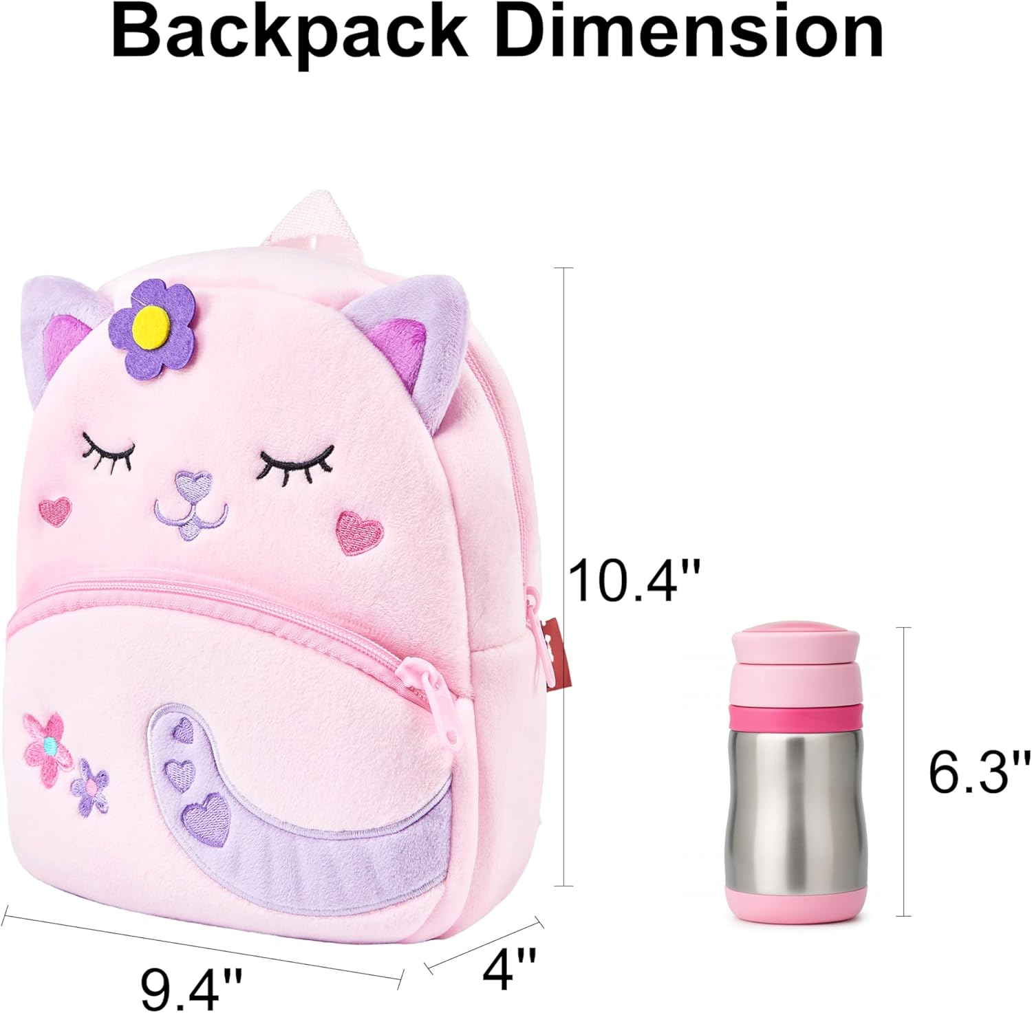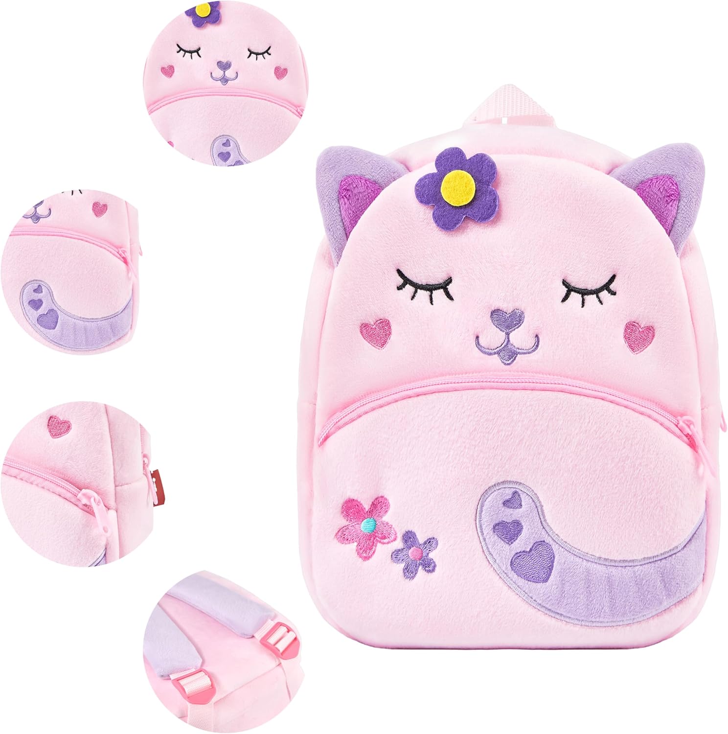 NICE CHOICE Cute Toddler Backpack Toddler Bag Plush Animal Cartoon Mini Travel Bag for Baby Girl Boy 2-6 Years(Floral Cat)