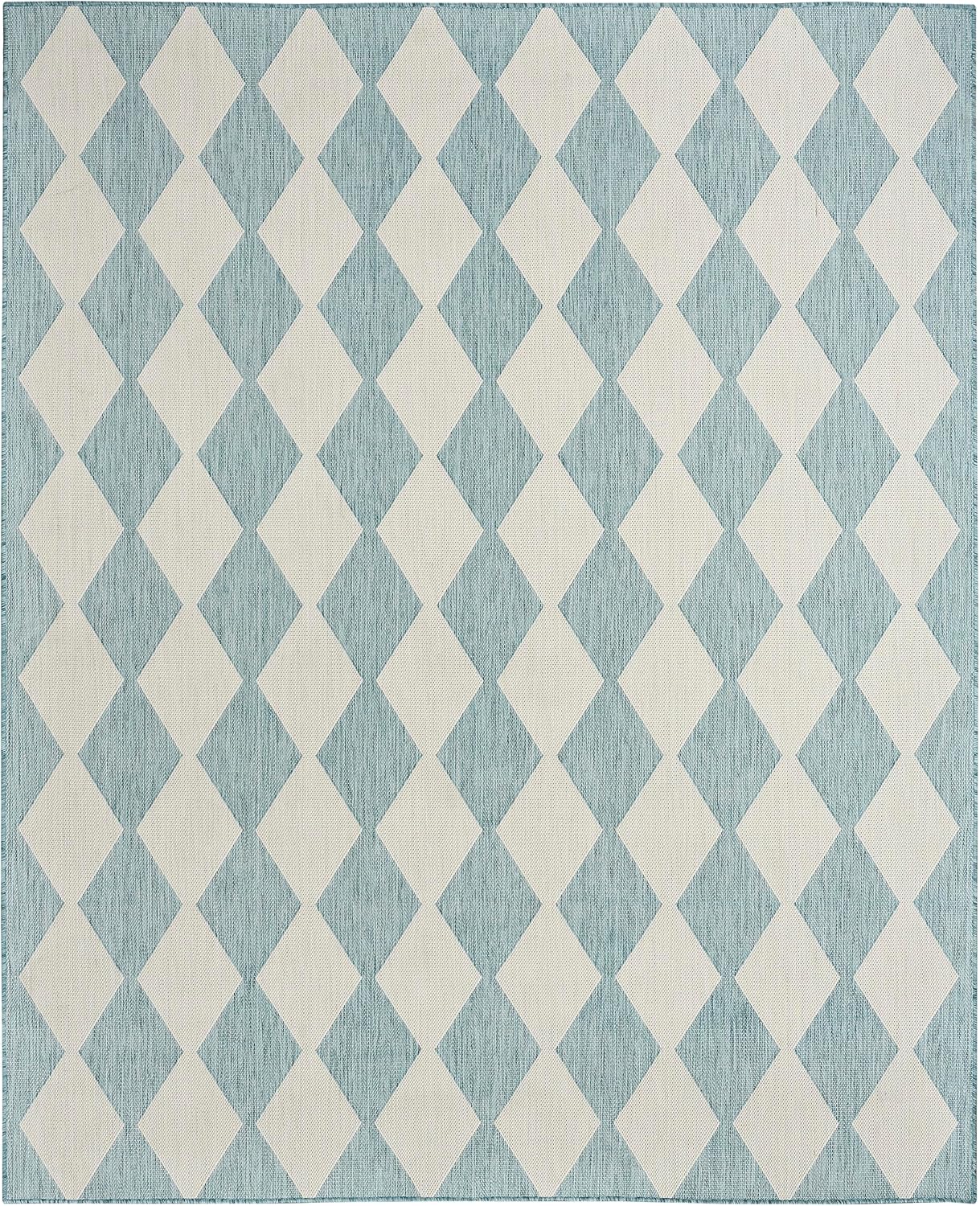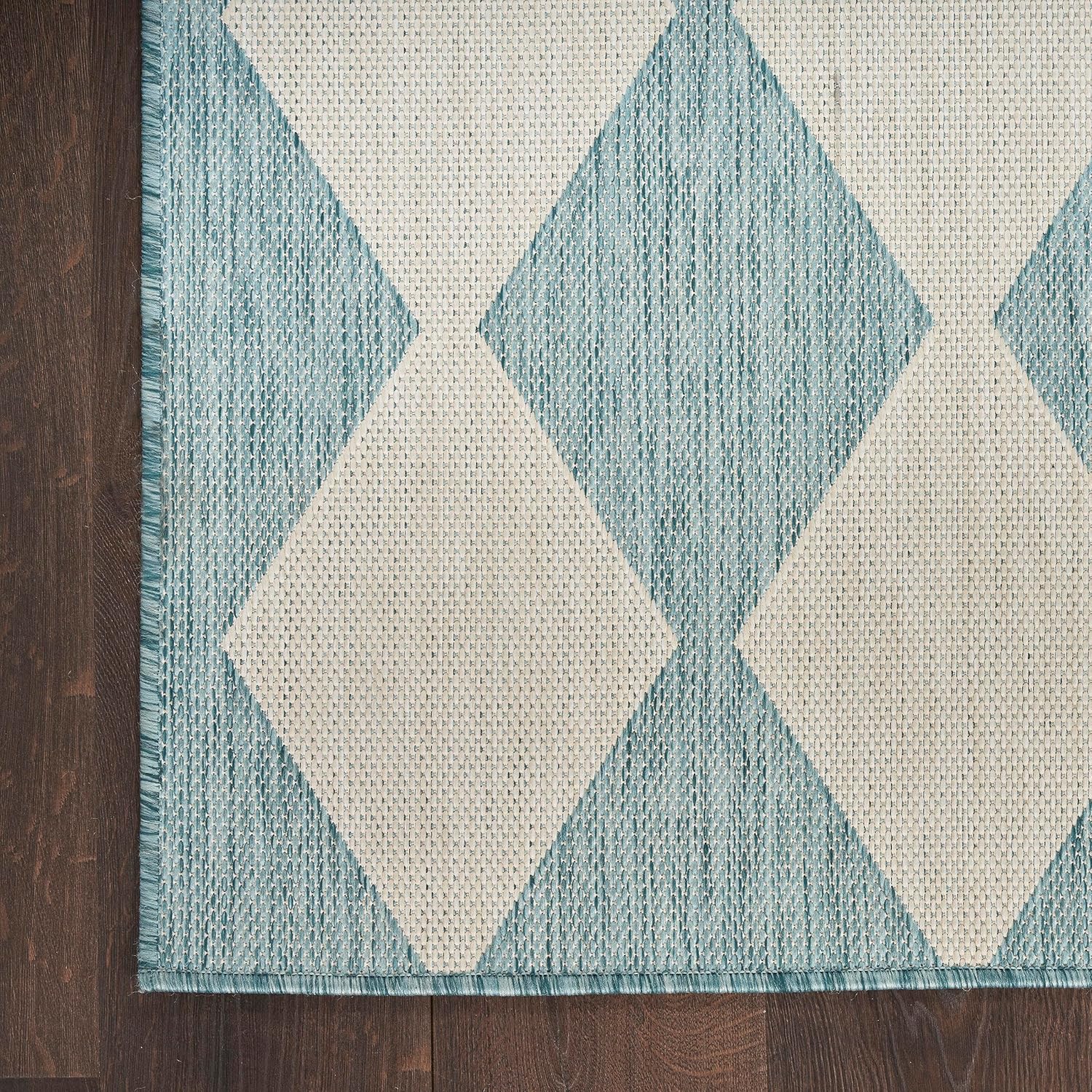 Nourison Positano Indoor/Outdoor Aqua 6′ x 9′ Area Rug, Easy Cleaning, Non Shedding, Bed Room, Living Room, Dining Room, Backyard, Deck, Patio (6×9)