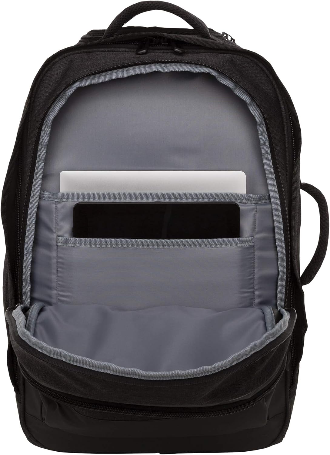 Large main compartment with three sub-dividded pockets
