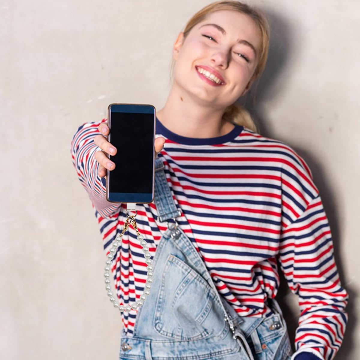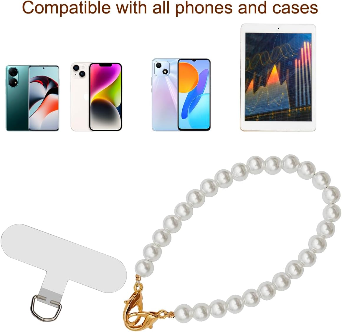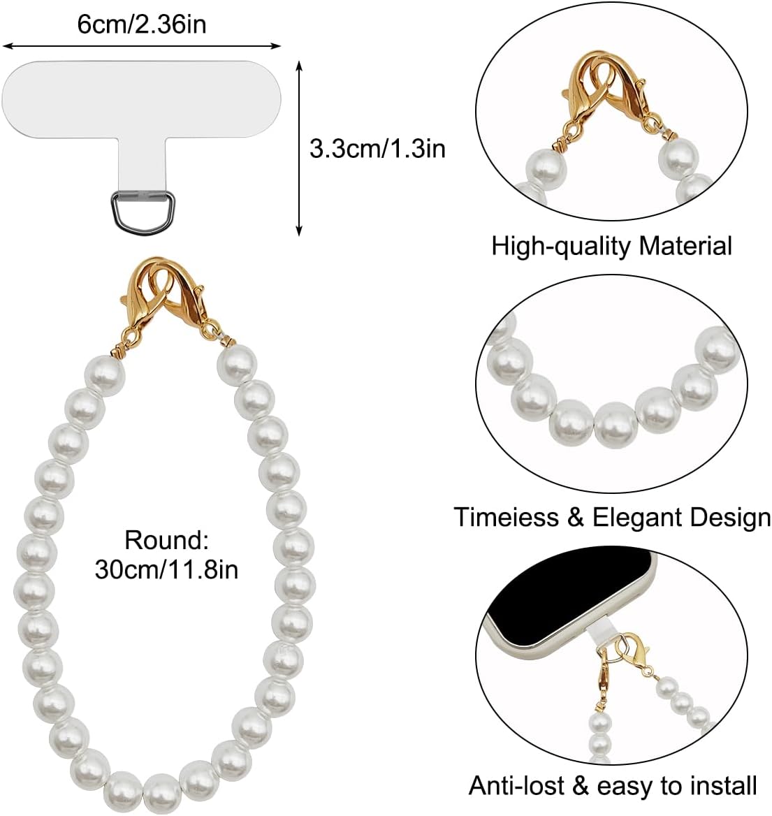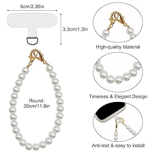 Package includes: A white pearl beaded phone wrist strap and 2 Pcs phone patches. It can keep your phone in line of sight at all times, preventing it from getting lost or lost.