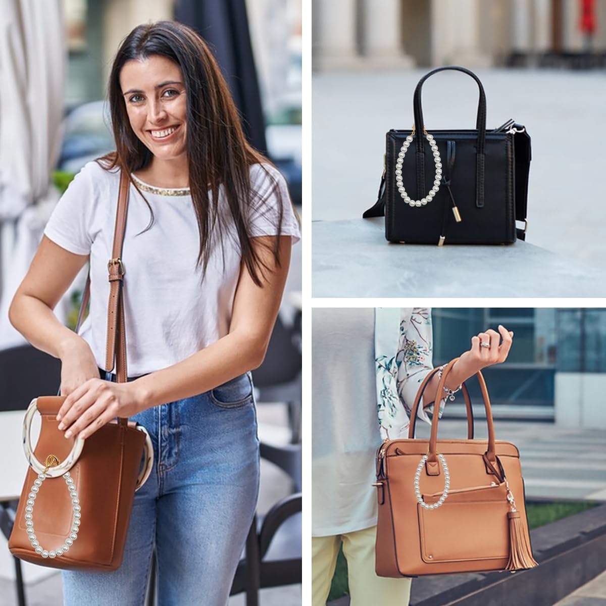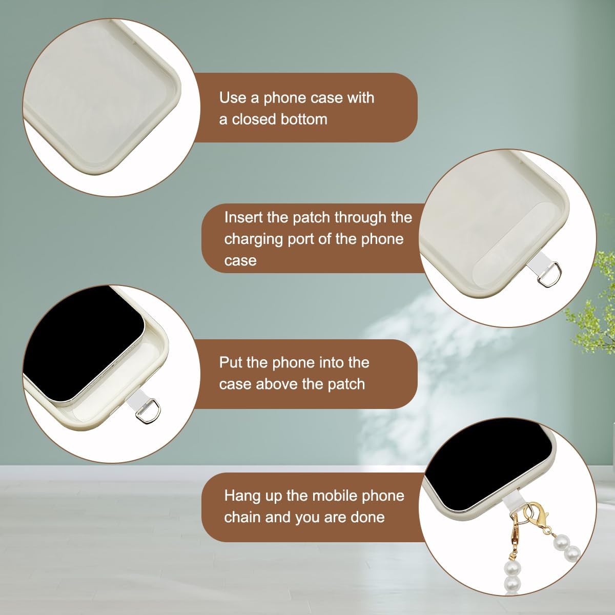 A white pearl beaded phone wrist strap and 2 Pcs phone patches. It can keep your phone in line of sight at all times, preventing it from getting lost or lost.