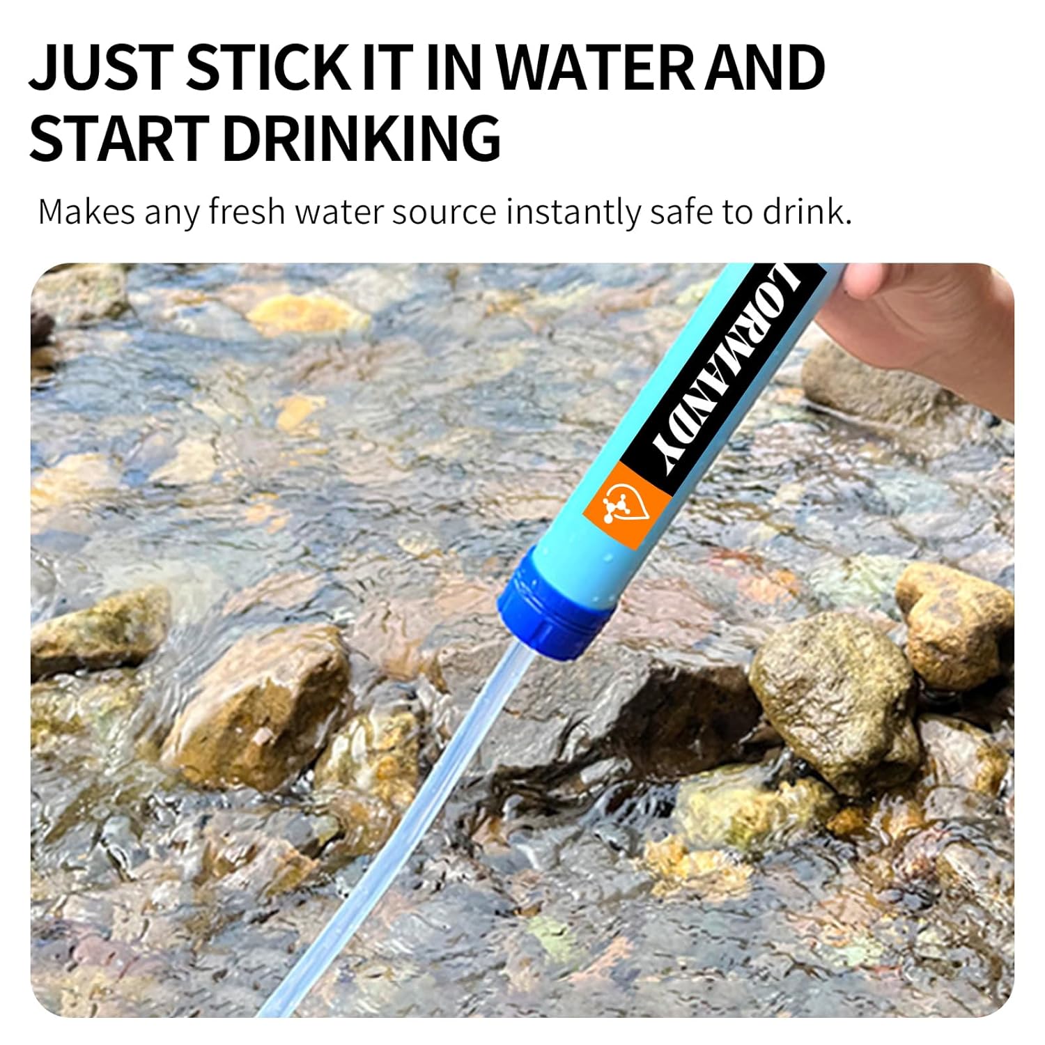 Personal Straw Water Filter Water Filtration System Mini Outdoor Portable Emergency Survival Gear Water Purifier for Hiking Camping Accessories Travel Hunting Fishing Emergency Preparedness (Blue)