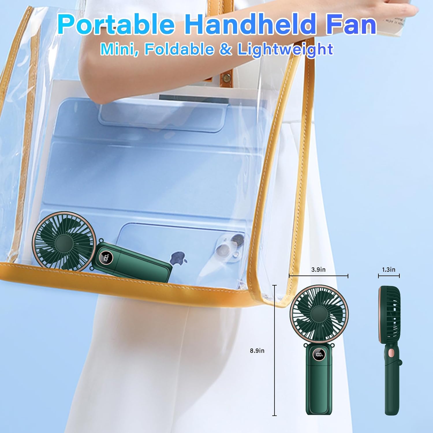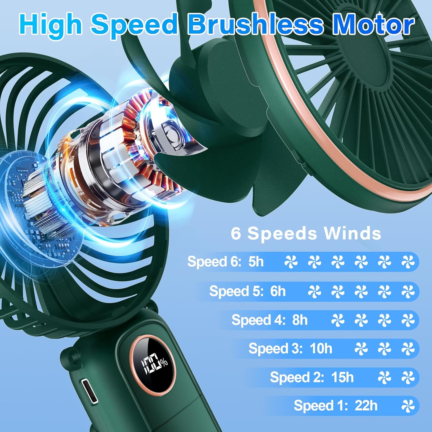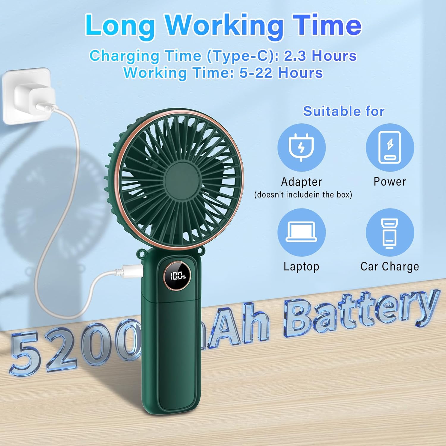 Portable Handheld Fan 5200mAh USB Rechargeable, 180° Foldable Electric Personal Small Mini Hand Held Fan, Max 22 HRS Working, 6 Speeds Level, LED Display, Battery Powered for Travel, Outdoor, Makeup