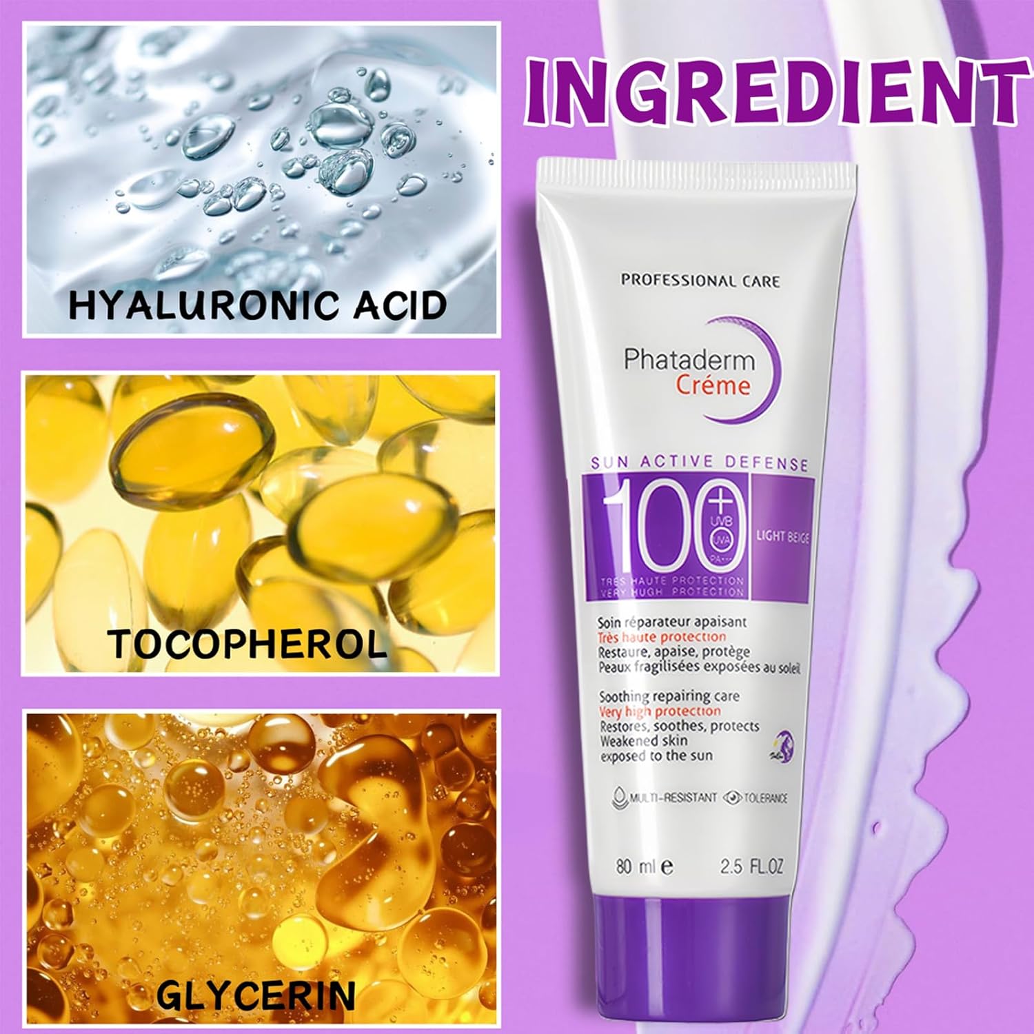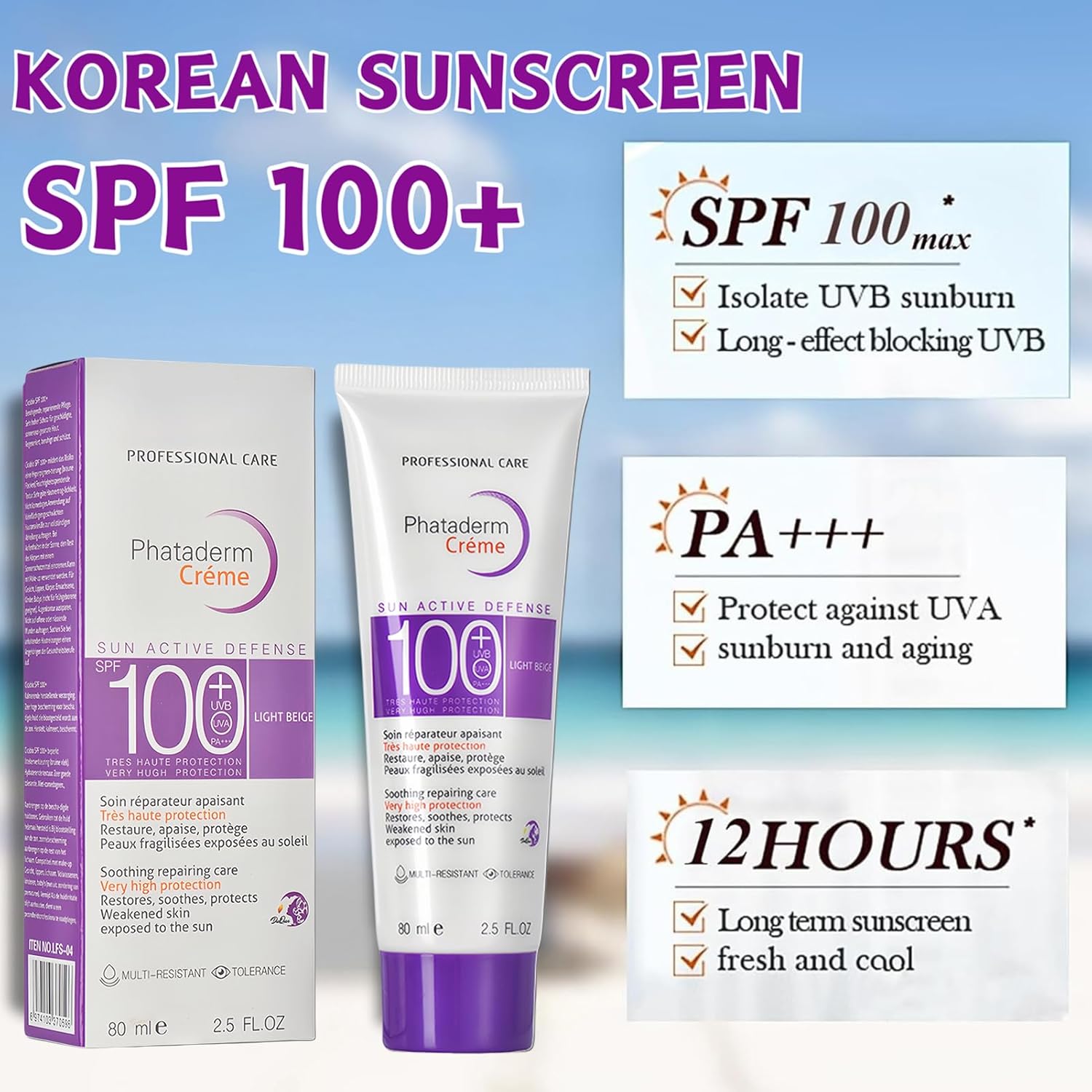 【High SPF 100 Sunblock Protection】 Formulated with broad-spectrum UVA/UVB protection, this 100 SPF sunscreen guards against sunburn, aging, and skin damage. A must-have high SPF sunscreen for face and body, suitable for sensitive, oily, or dry skin