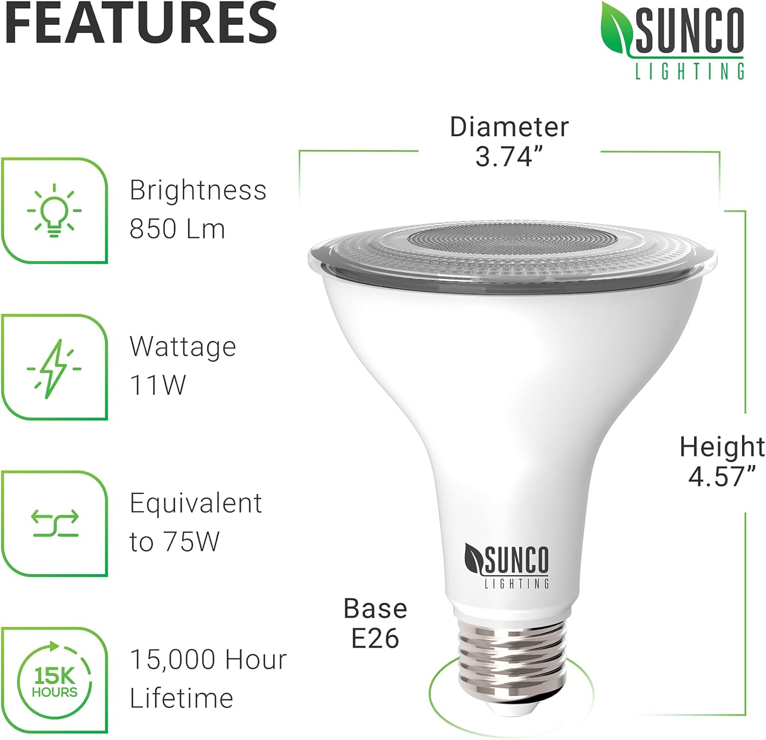 Be the first to review “Sunco LED PAR30 Dusk to Dawn Light Bulb for Outside Porch, Patio, Backyard, 11W=75W, 850 LM, Selectable CCT 2700K/3000K/4000K/5000K, Non-Dimmable, Photocell Sensor, UL 4 Pack.”