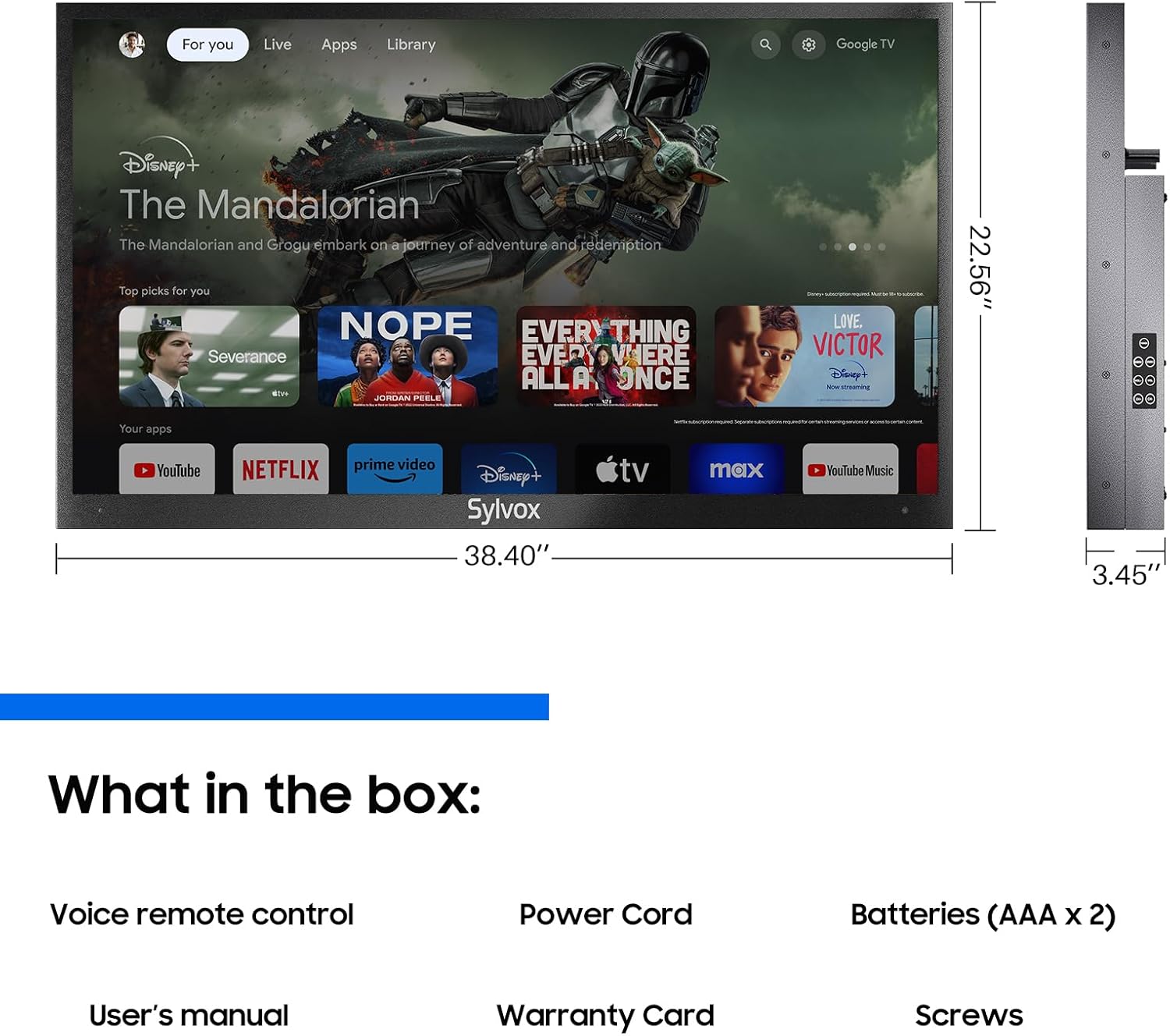 Be the first to review “SYLVOX Outdoor TV, 43” QLED Smart TV, IP55 Waterproof, Dolby Atmos HDR 10, Voice Remote,1000nits Weatherproof Television, Chromecast Built-in for Deck, Patio or Garden(Deck Pro QLED 2.0)”