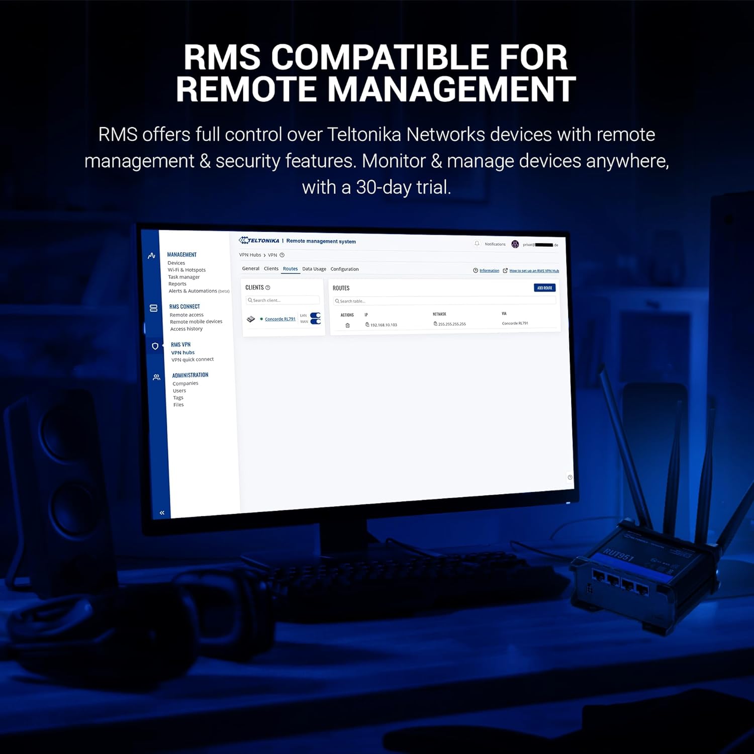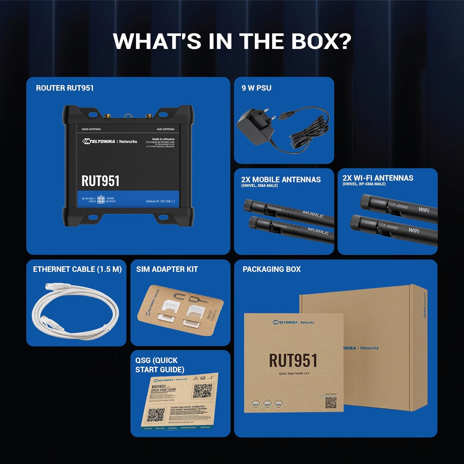 ADVANCED RUTOS FEATURES: Powered by RutOS, the RUT951 provides advanced customization, automation options, and top-level security for your network router. This SIM card wifi router ensures a secure and efficient network environment. Compatible with Teltonika RMS, it allows for remote management, and enhanced security, & comes with a 30-day trial.