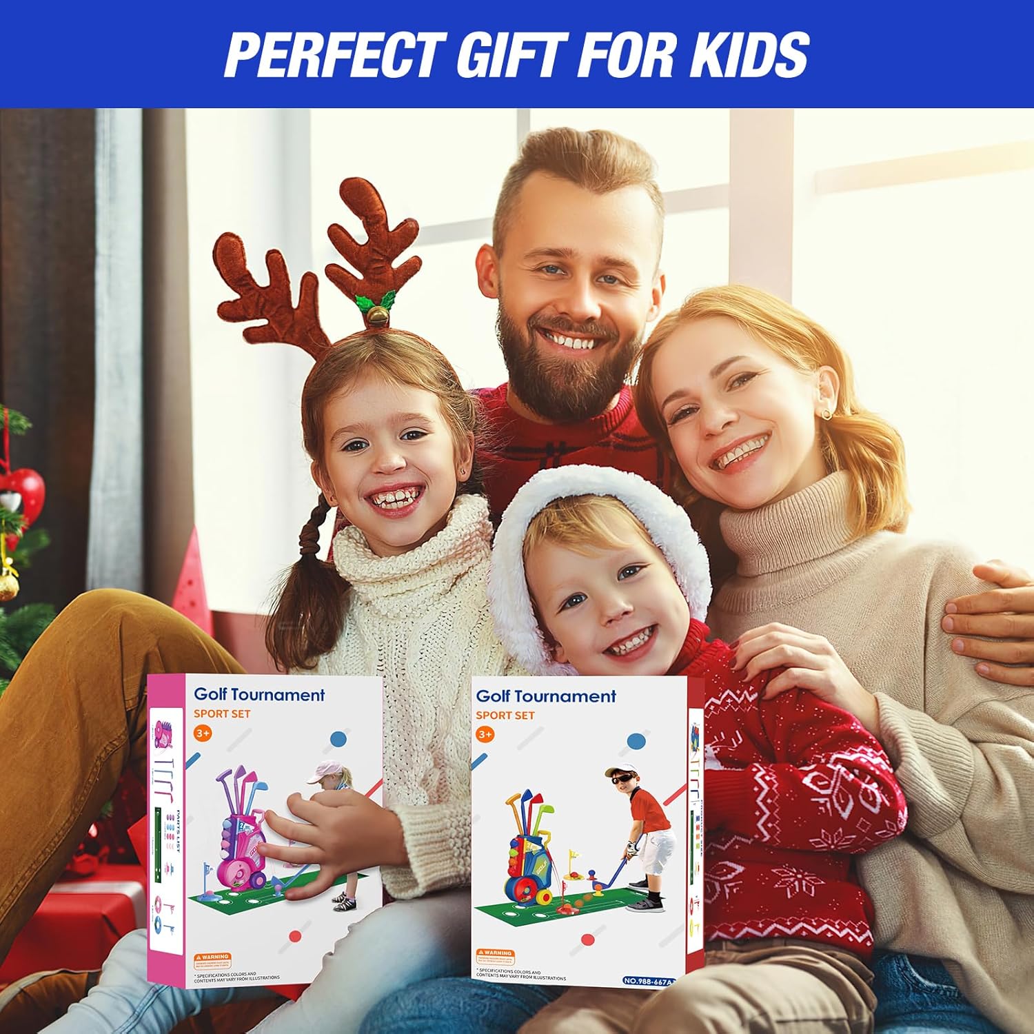 Toddler Golf Set, Upgraded Kids Golf Clubs with 12 Balls, Putting Mat, Shoulder Strap, Indoor Outdoor Sport Toys Gift for Boys Girls, Blue