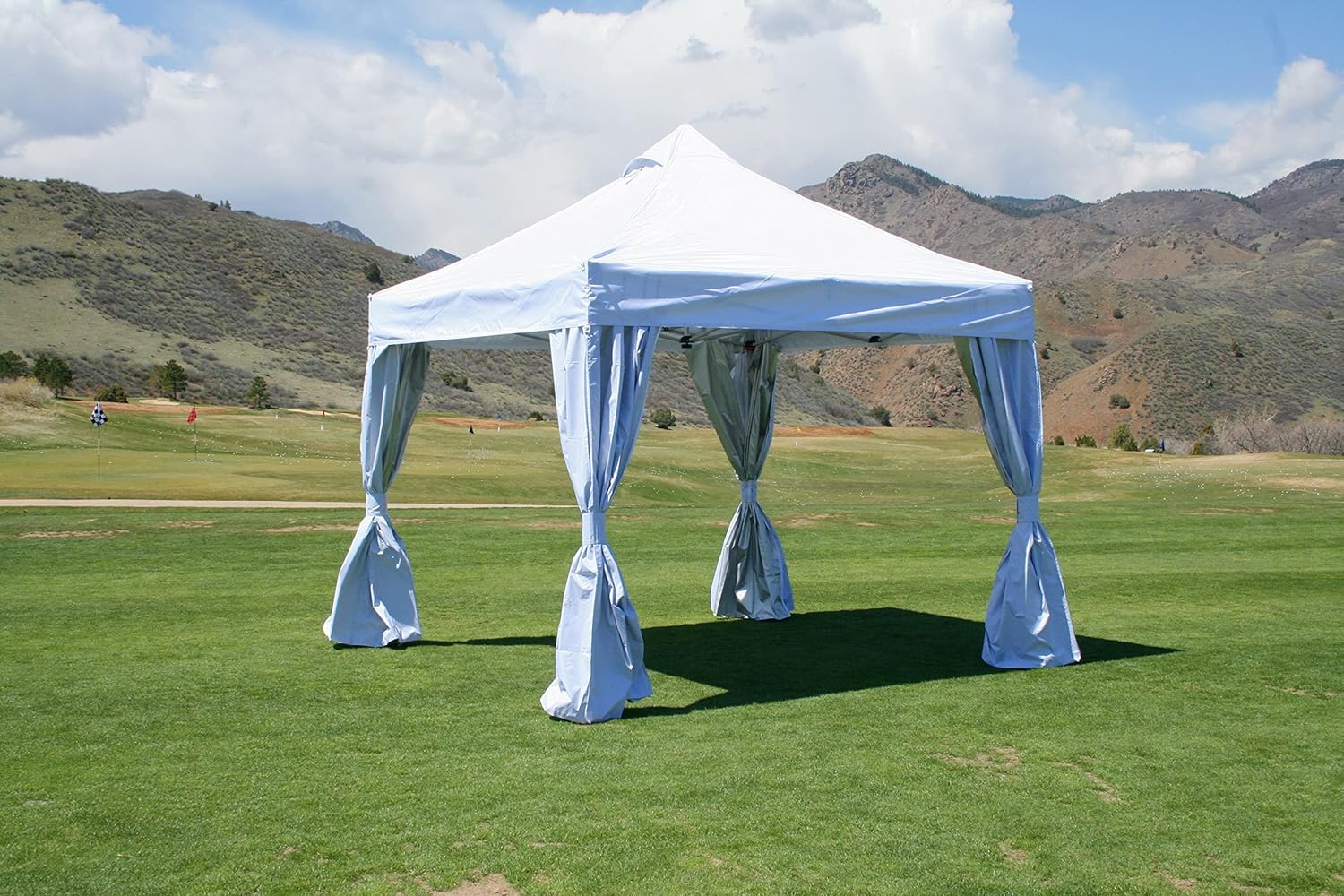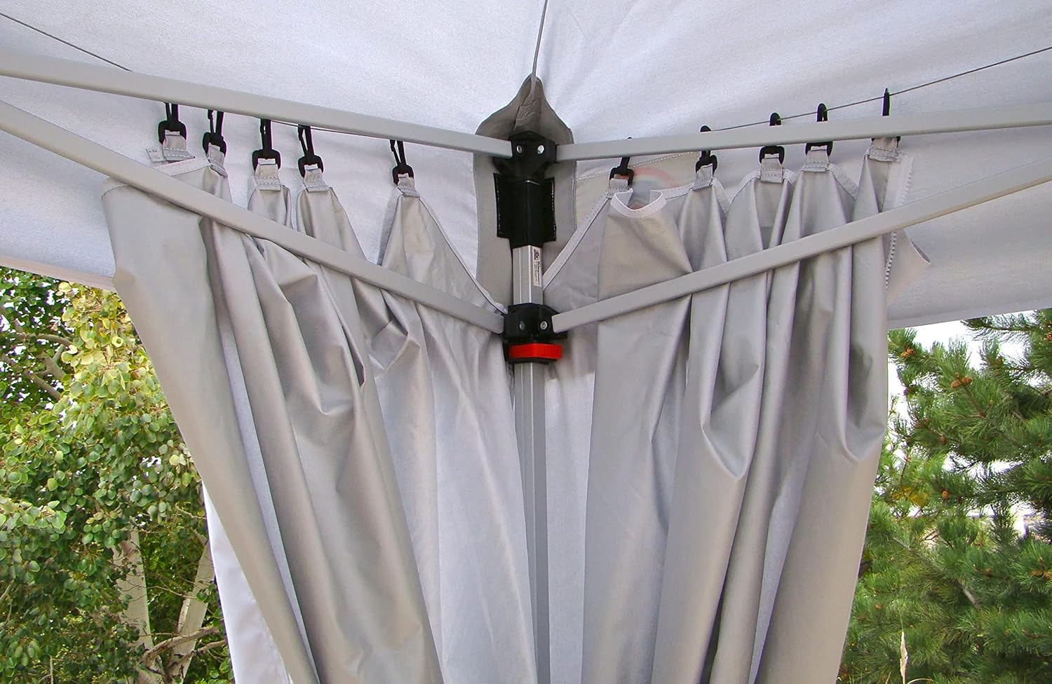 10X10 POP-UP CANOPY WITH SIDEWALLS: Elegant and simple, UNDERCOVER’s patented Curtain Rail System is a game-changing accessory, featuring clip-on sliding polyester curtain-walls for dynamic sidewall set-ups.