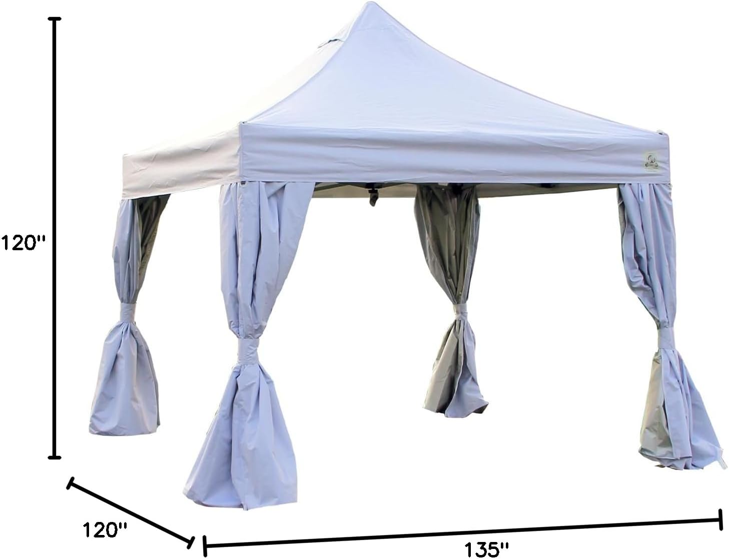10X10 POP-UP CANOPY WITH SIDEWALLS: Elegant and simple, UNDERCOVER’s patented Curtain Rail System is a game-changing accessory, featuring clip-on sliding polyester curtain-walls for dynamic sidewall set-ups.