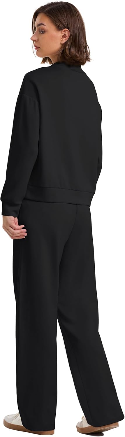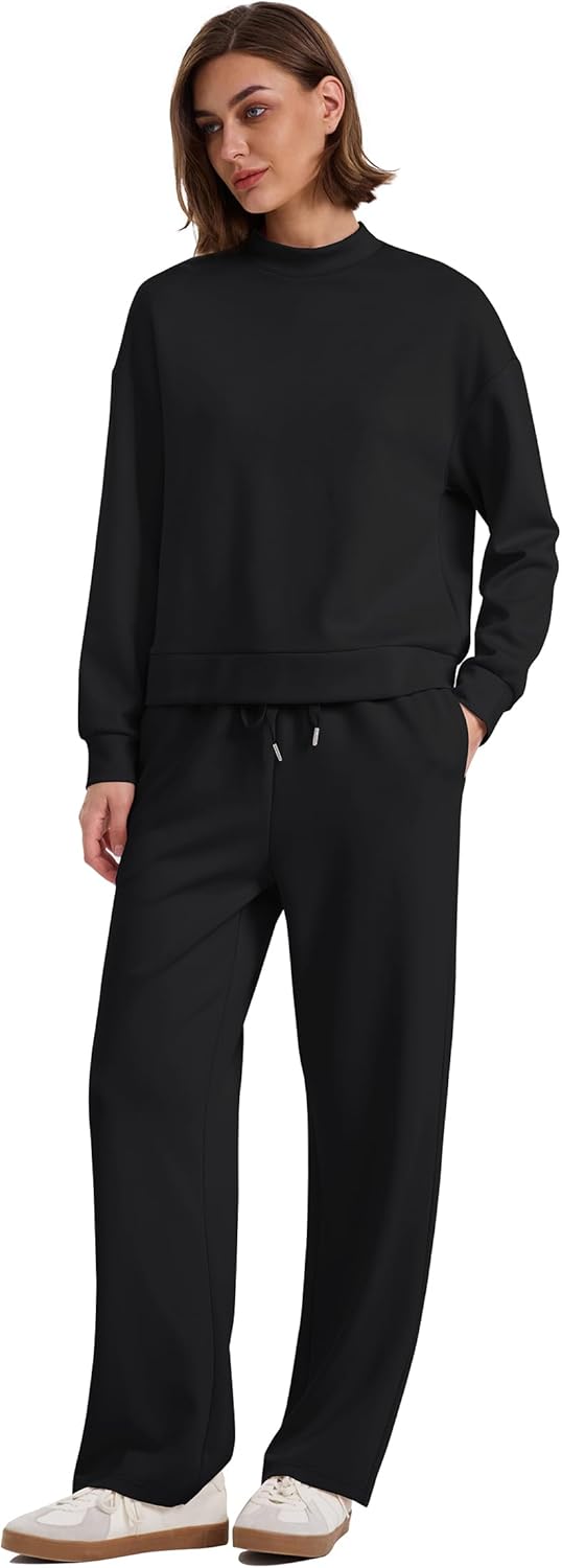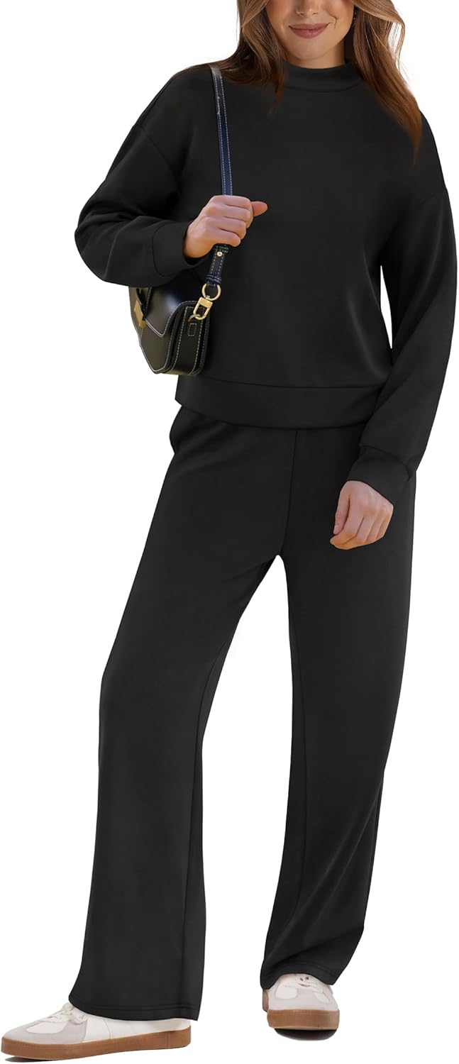 WIHOLL Two Piece Sets for Women Fall Outfits Lounge Sets Mock Neck Tops Wide Leg Pants Vacation Travel Airport Outfits